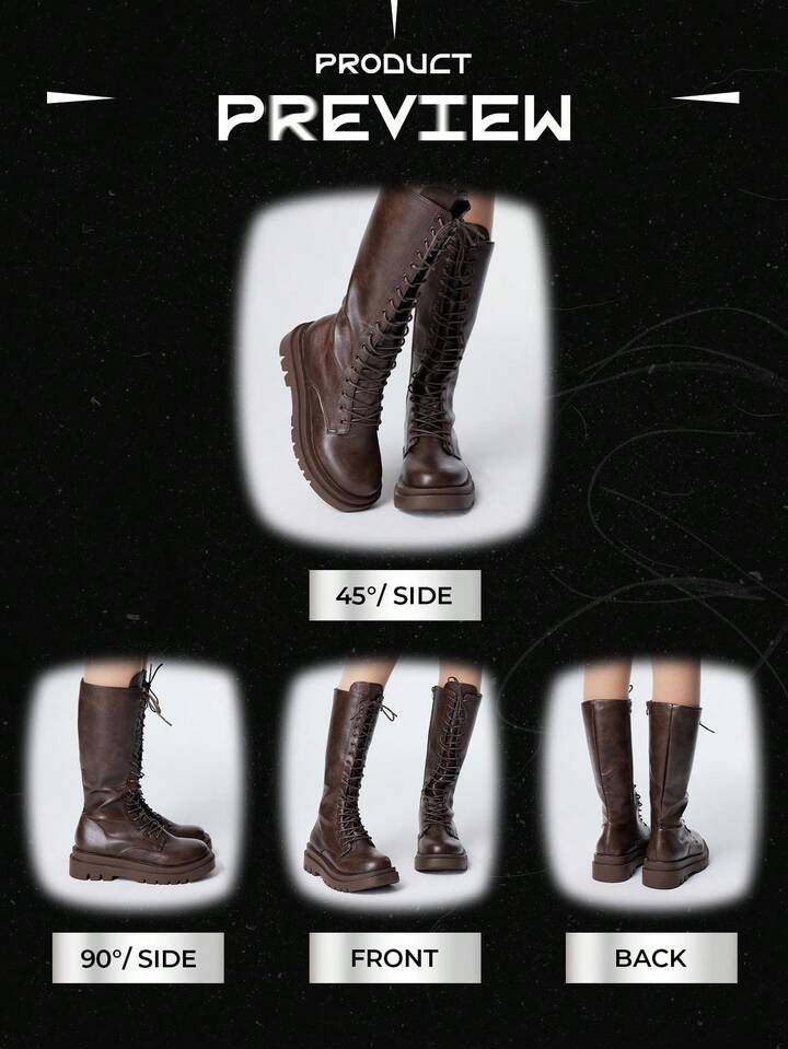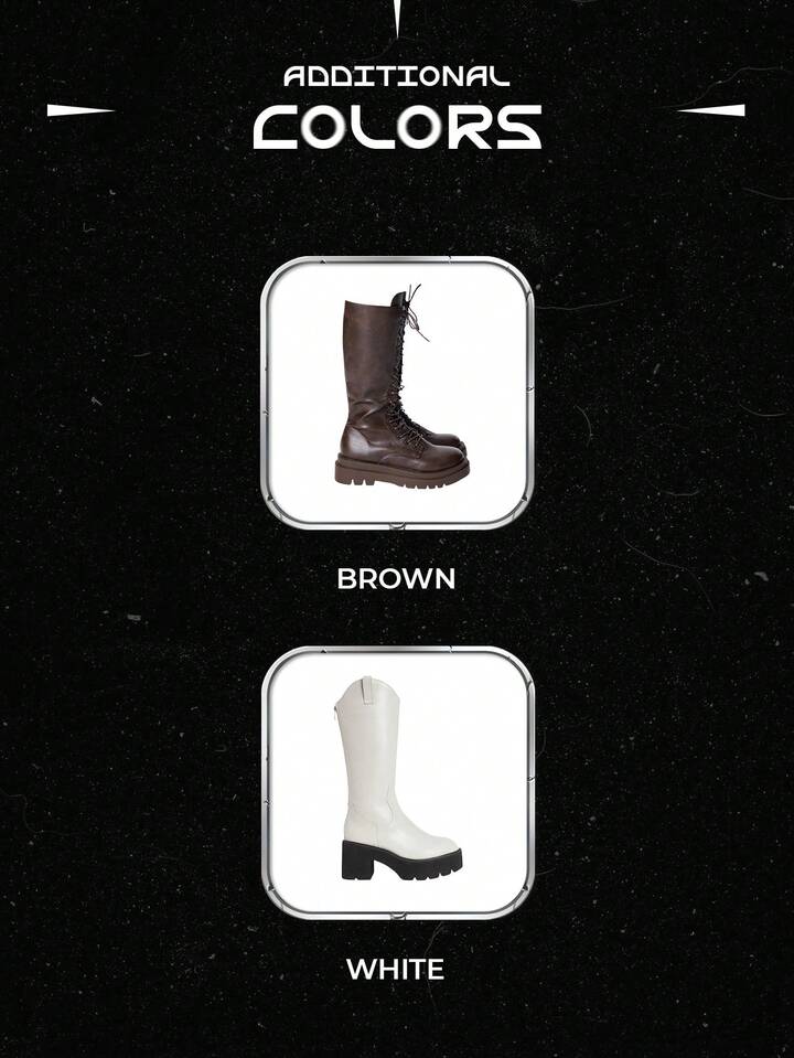 Goth بوت نسائية طويلة حتى الركبة ذات رباط أنيق وكعب سميك وضخم