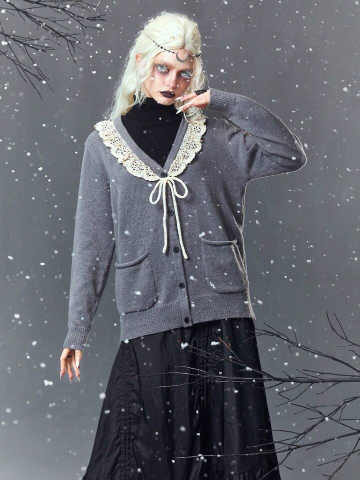 Goth سترة نسائية من الدانتيل معقودة من الأمام
