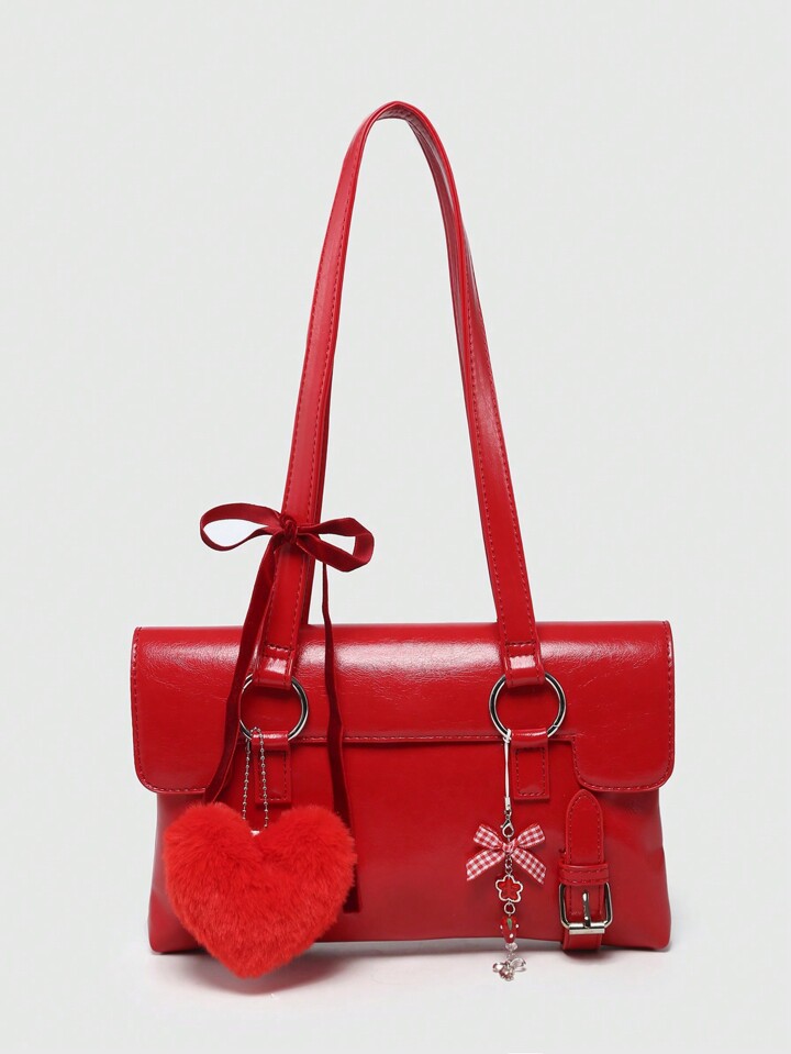 Goth حقيبة كتف مقسم للسيدات بتصميم عتيق بصليب معدني واكسسوارات متمردة ، فرو، ربطة عنق، هلال، تفاصيل بطبعات نمر