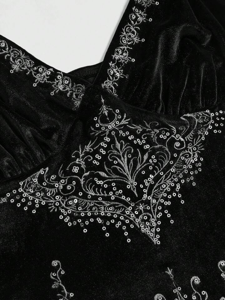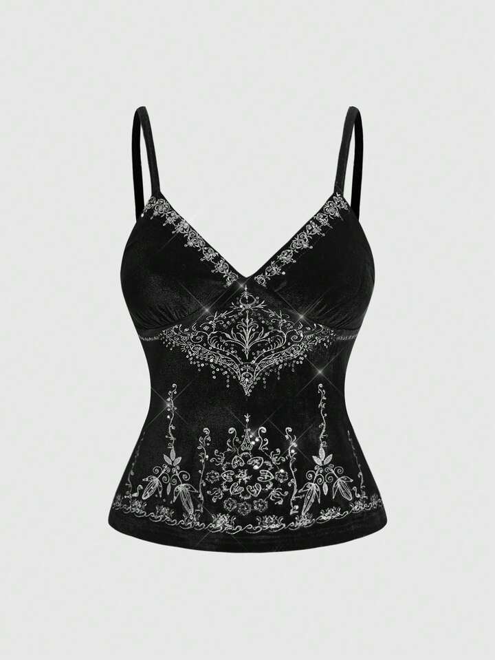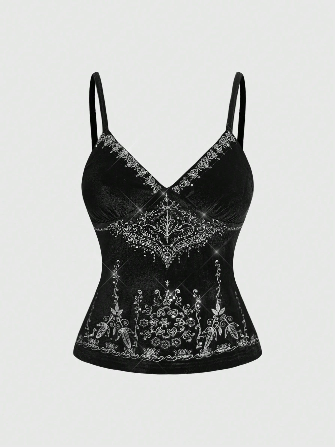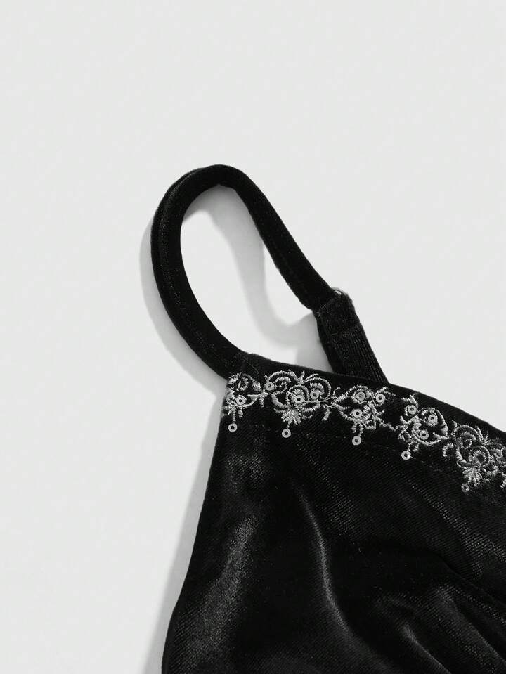 Goth كامي مخمل مطرز بالترتر الفاخر للنساء
