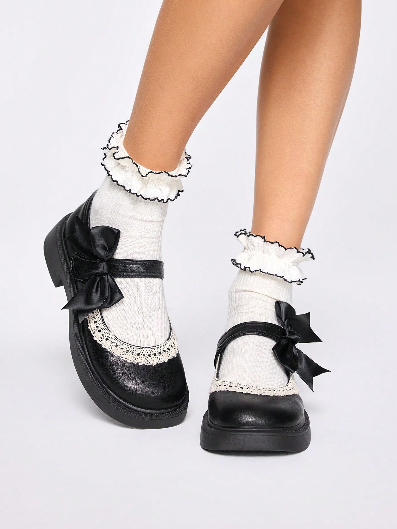 Goth أحذية نسائية بطراز فينتاج ماري جين، نصف مدبب، سُمك الحذاء 4 سم، تريم دانتيل، إبزيم حزام، جلد صناعي، تصميم فيونكة، جميلة، متعددة الاستخدامات، مناسبة للمدرسة/العمل، باللون الأسود