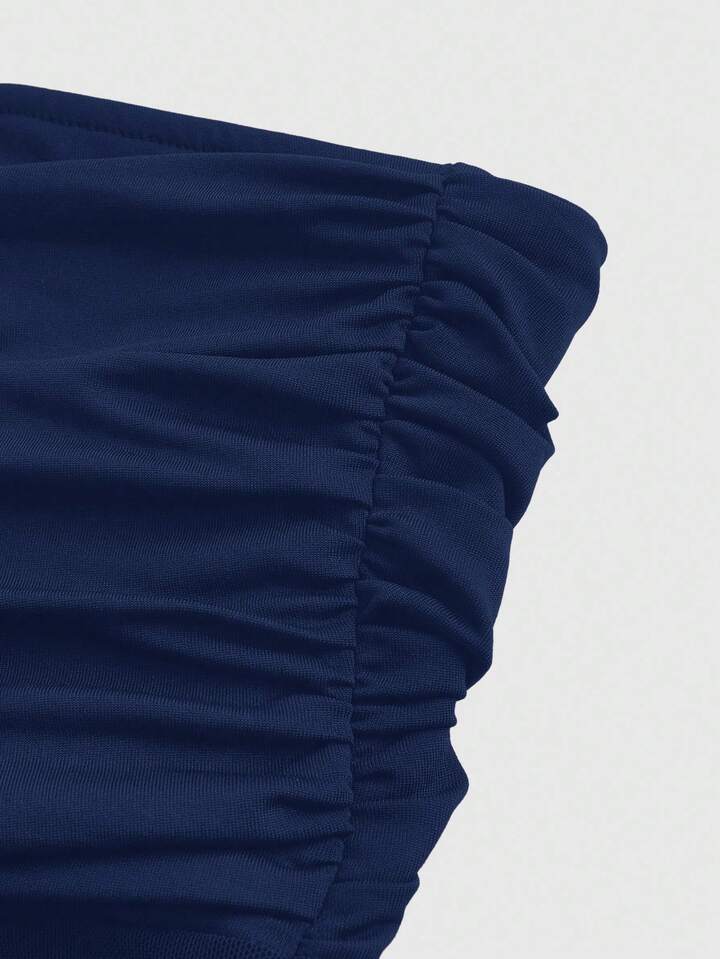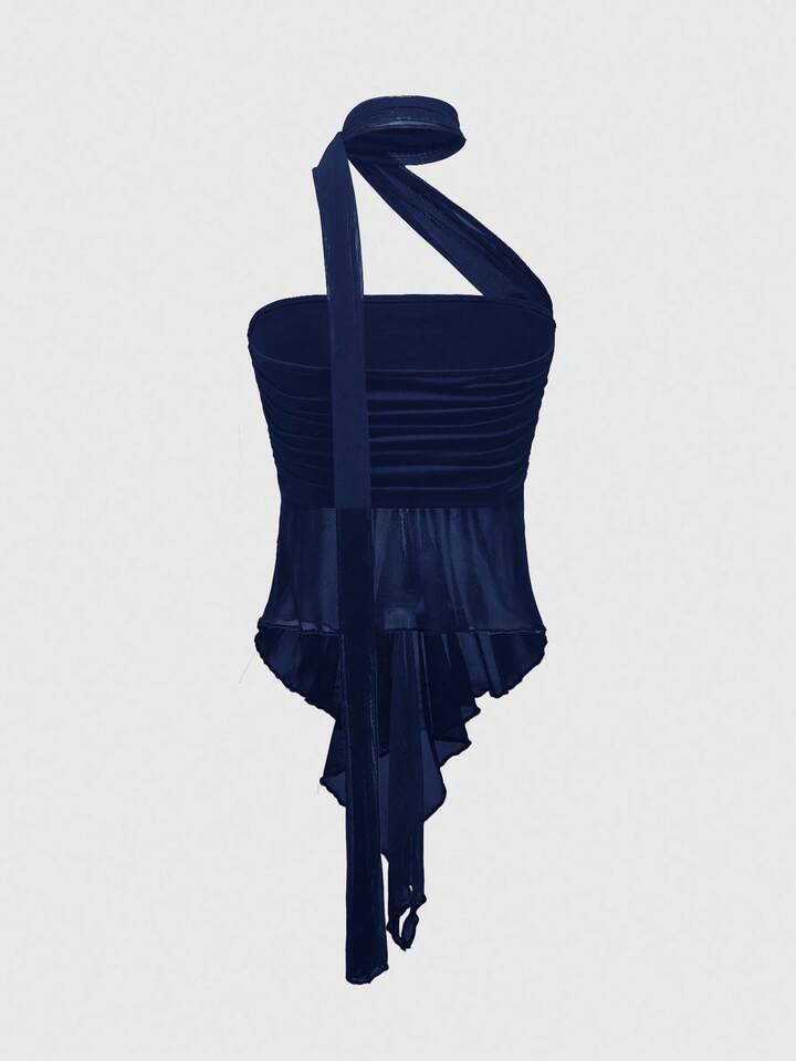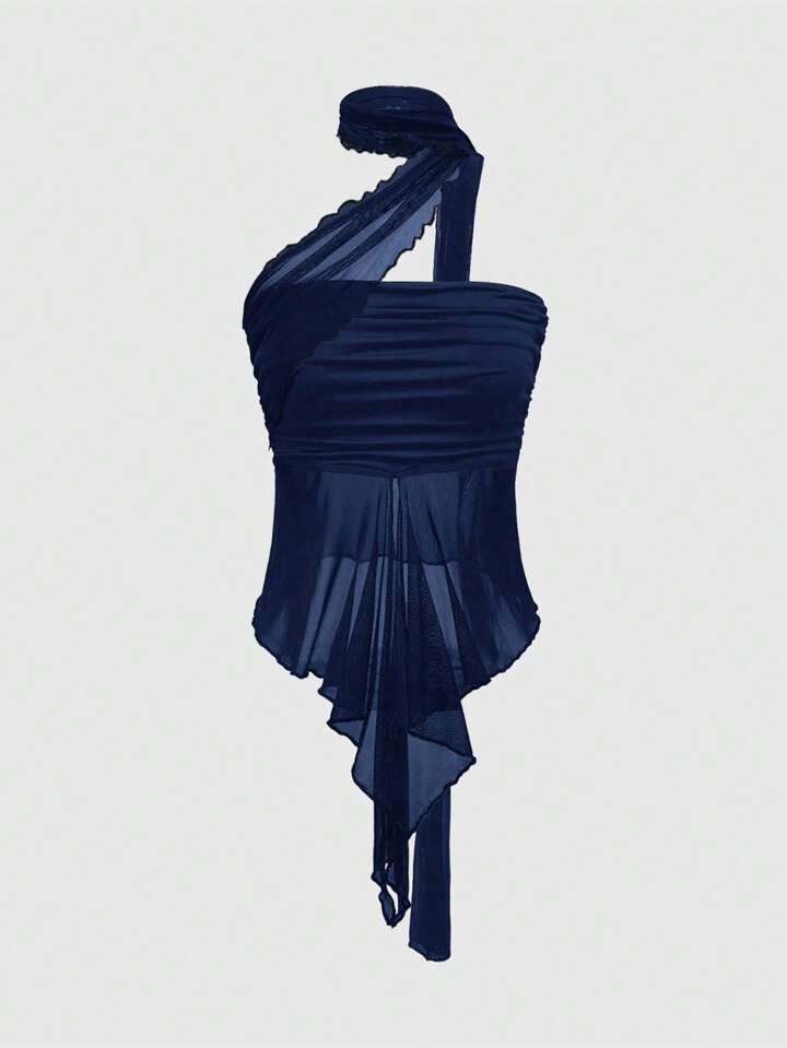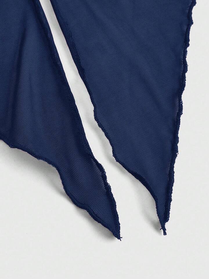 Goth توب قصير للنساء مع وشاح شبكي قابل للفصل بتجاعيد جذابة و أنيق بطراز Y2K