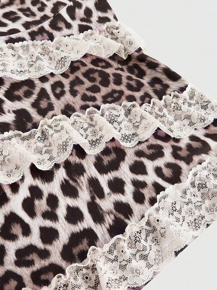 Goth ملابس علوية محاصرة ليوبارد ملونة باتشوورك, بدلة حافة دانتيل زهرية عصرية للنساء