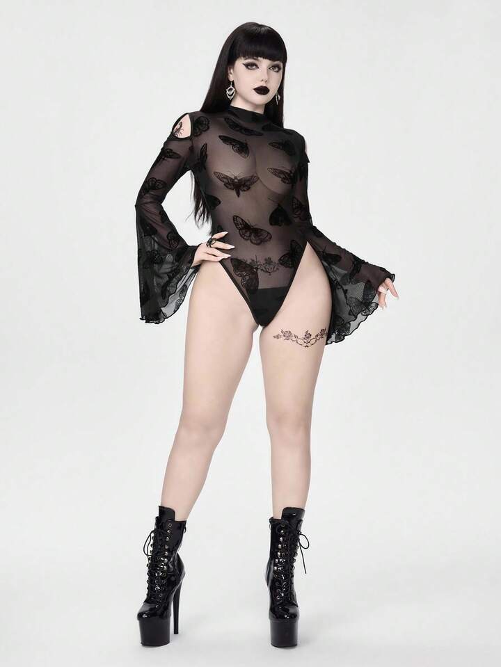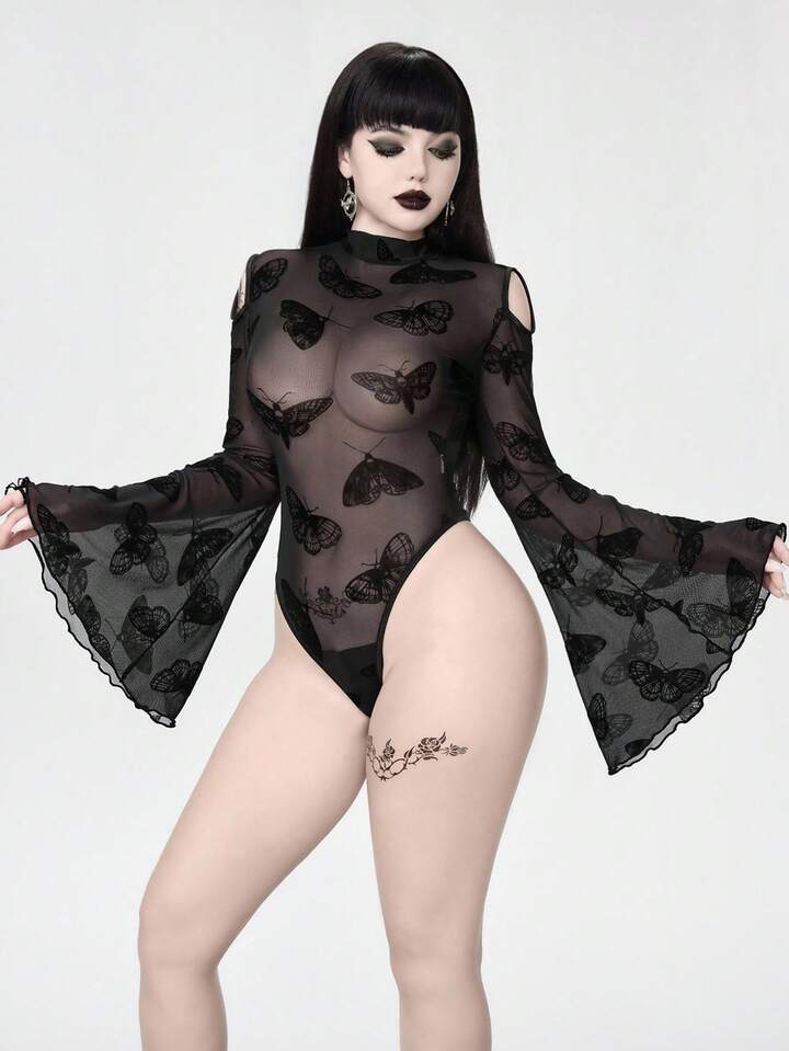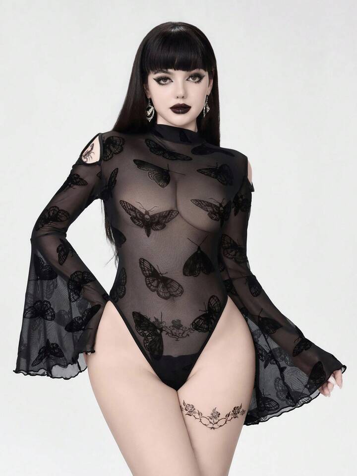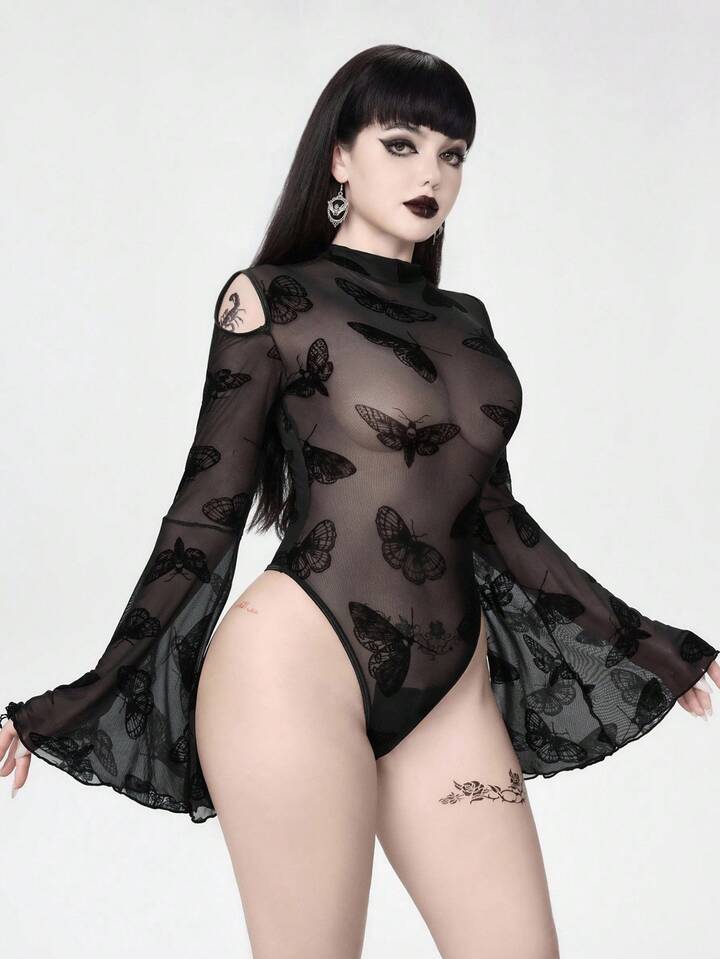 Goth جمبسوت قصيرة بأكمام واسعة وياقة مزخرفة بالدانتيل على الطراز الجوتي الجذاب