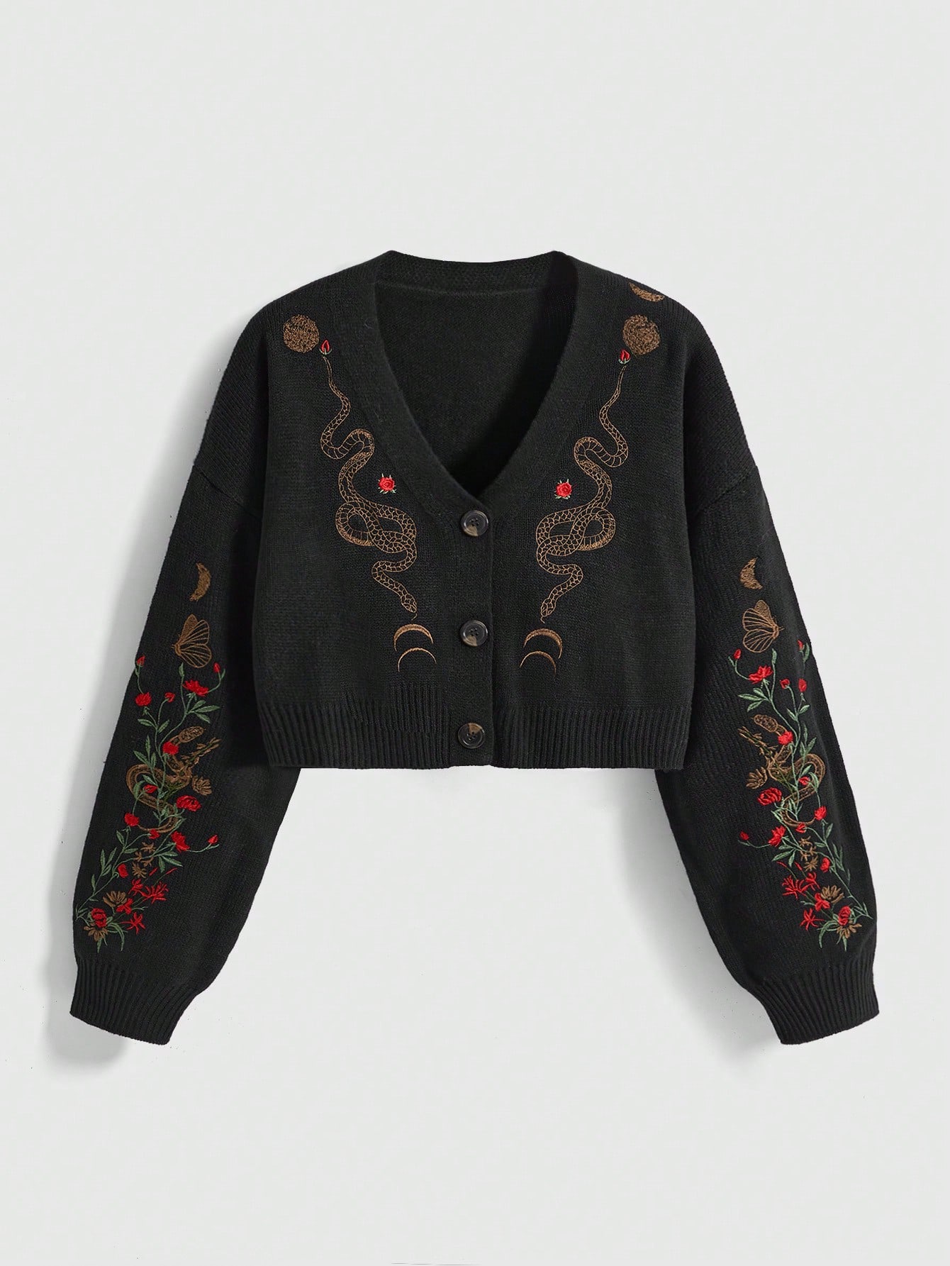 Goth كارديجان فضفاض مطرز بالنبات والثعبان، بطابع غوثي داكن وغامض