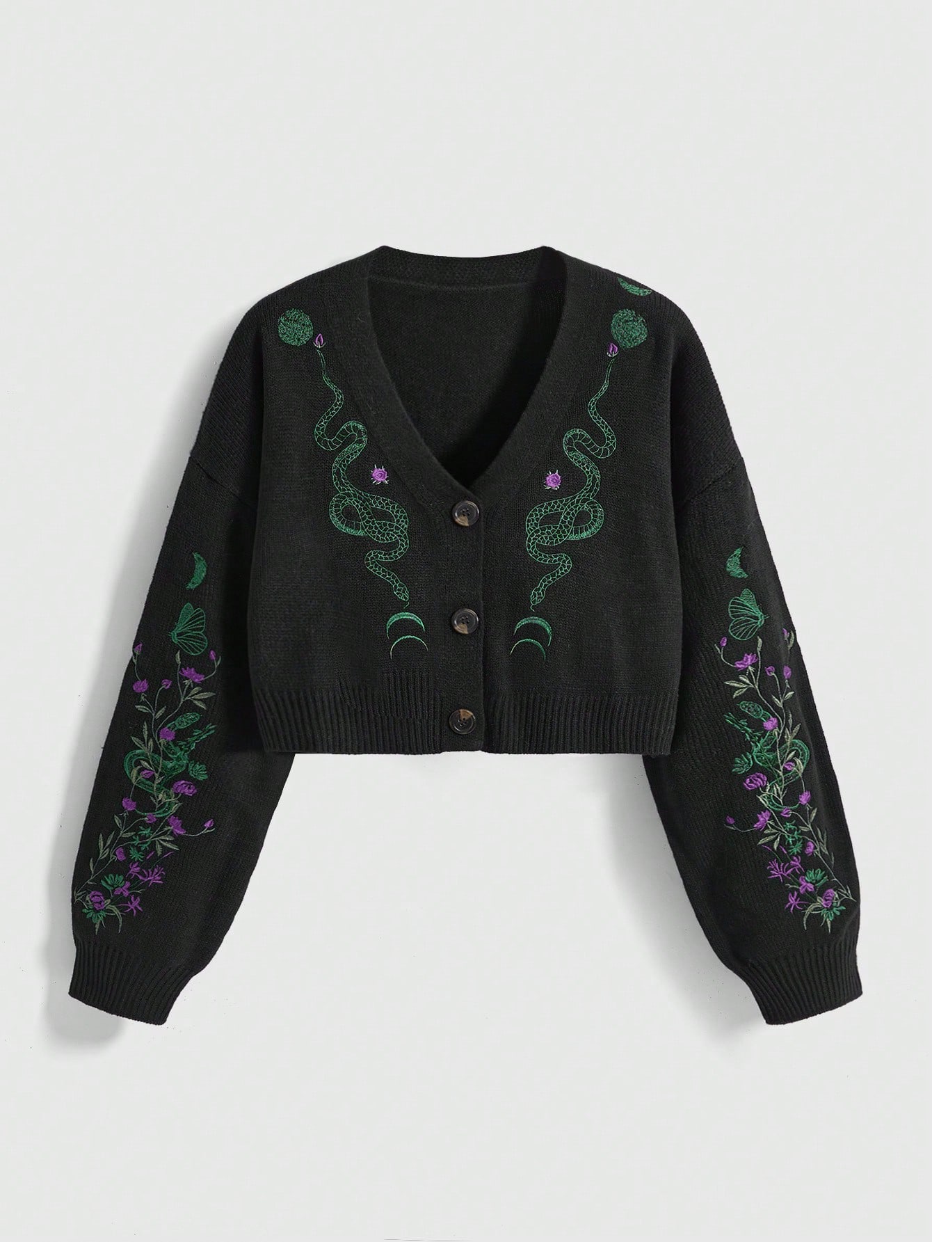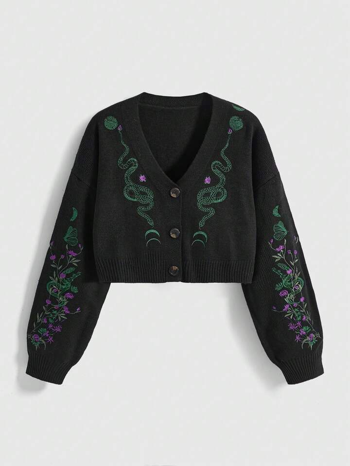 Goth كارديجان فضفاض مطرز بالنبات والثعبان بطابع غوثي داكن وغامض
