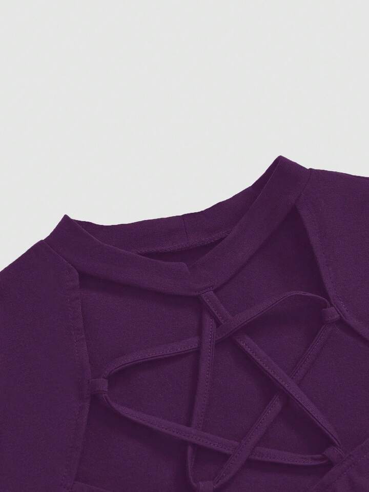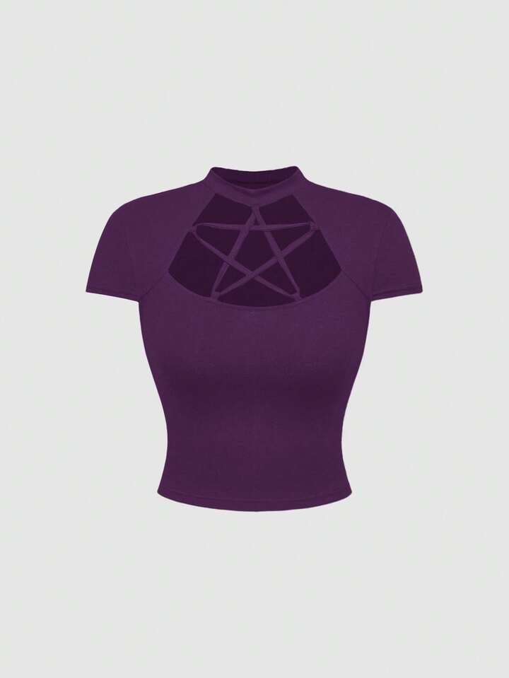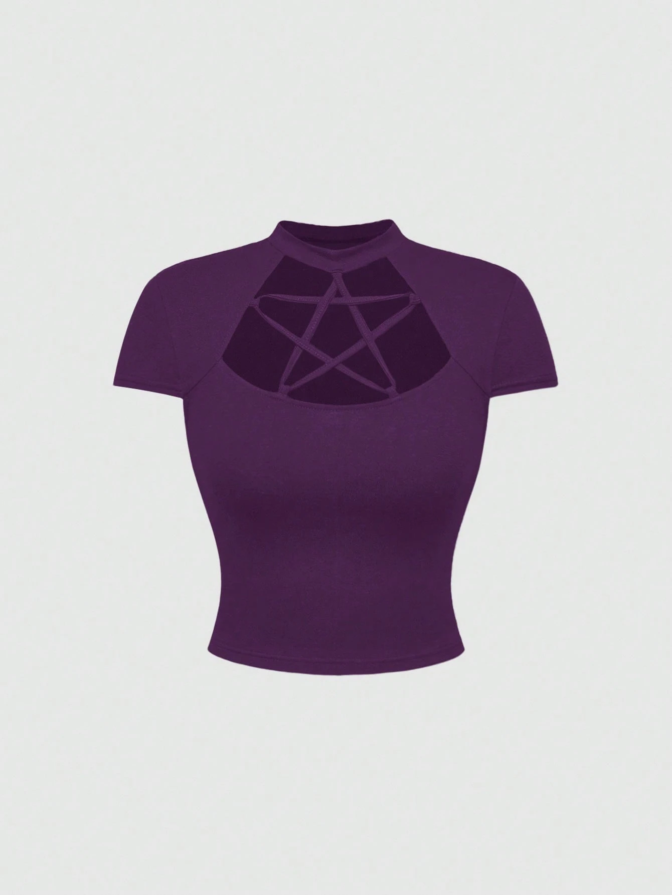 Goth تي شيرت مطبوع بنجمة خماسية ذات فتحة أمامية مربوطة بالسير على الطراز الجوثي