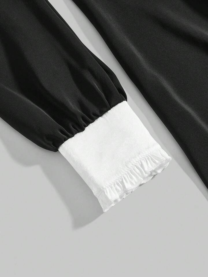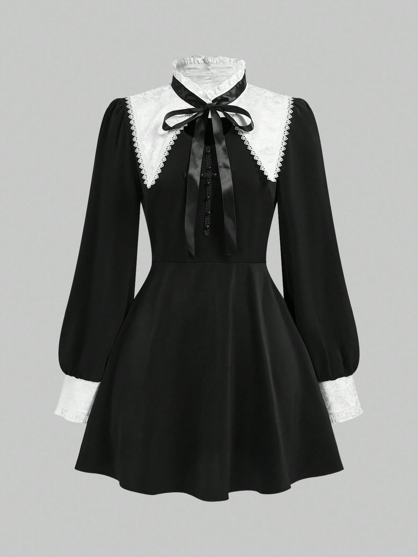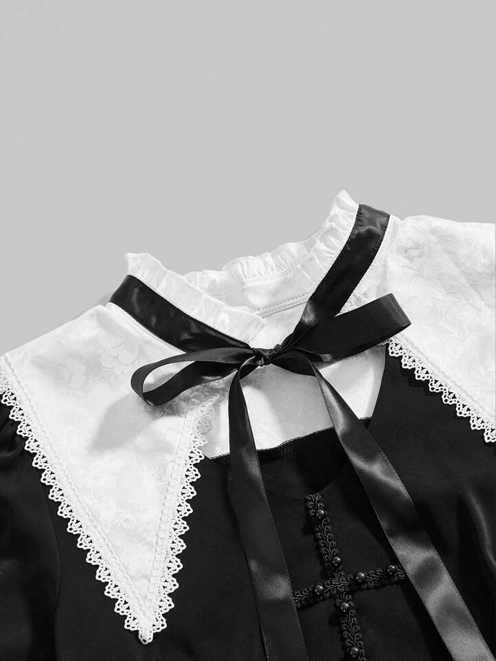 Goth فستان كولاريت أسود وأبيض بفيونكة للنساء بطراز جوثيك لوليتا