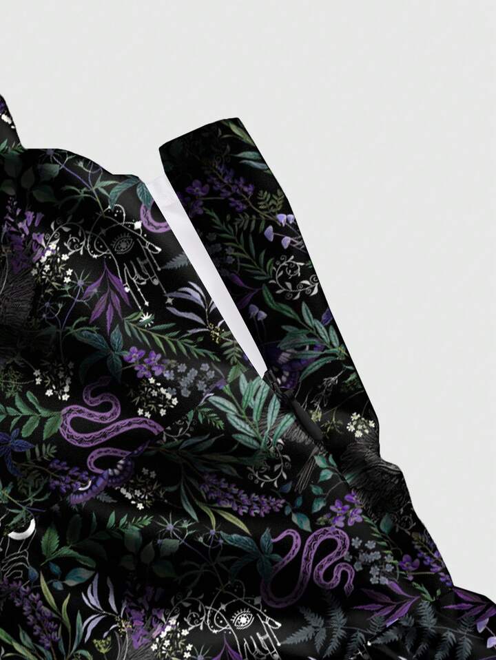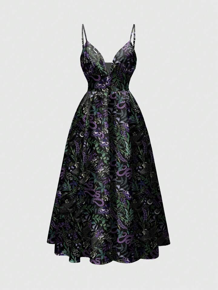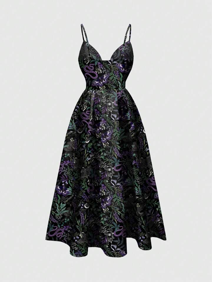 Goth فستان نسائي ذو حمالات رفيعة وقصة منخفضة بطبعات رومانسية للثعبان والنجوم السماوية، بطابع غوثي وسحري