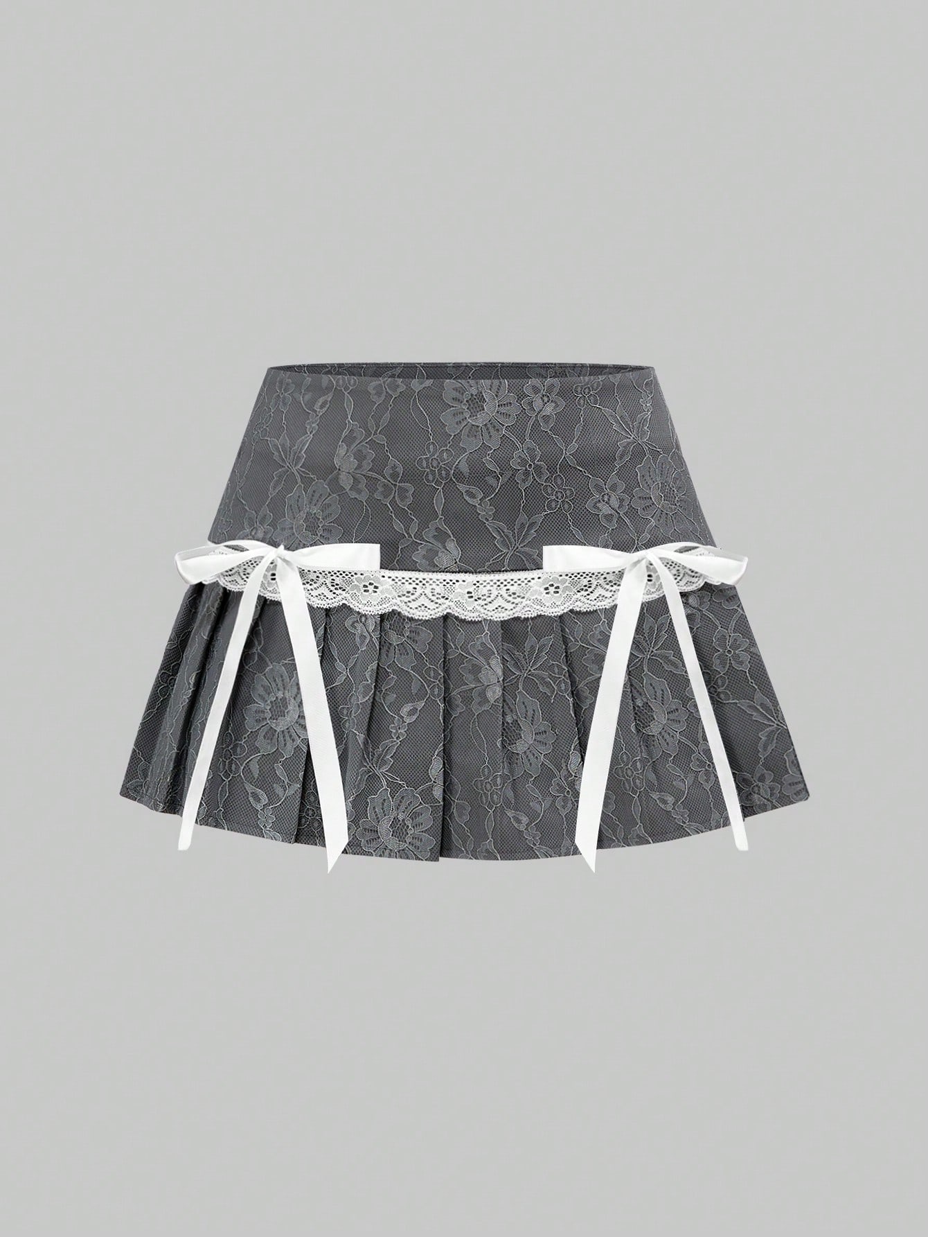 Goth تنورة قصيرة جوتية بفيونكة ملائمة للكاجوال بتباين الدانتيل