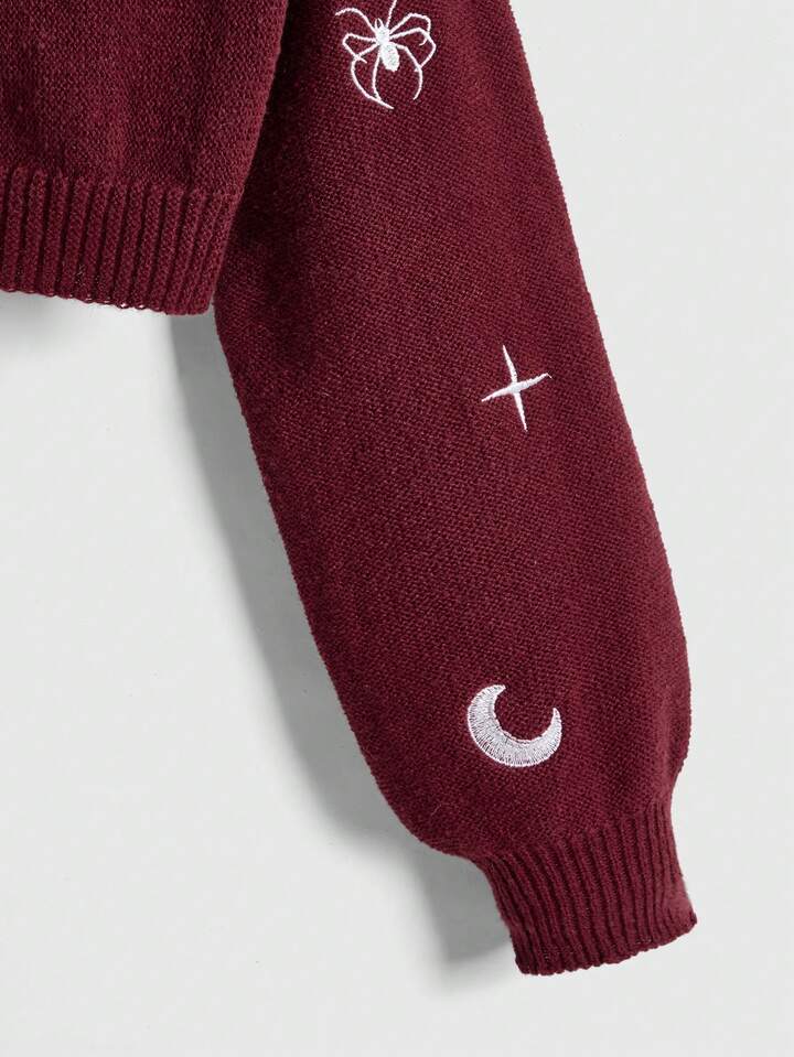 Goth كنزة قصيرة فضفاضة بفتحة أمامية مطرزة على طراز جوثيك، مناسبة لعيد الميلاد والسنة الجديدة
