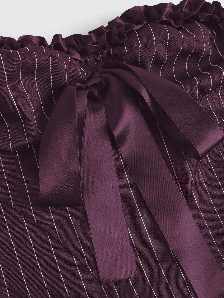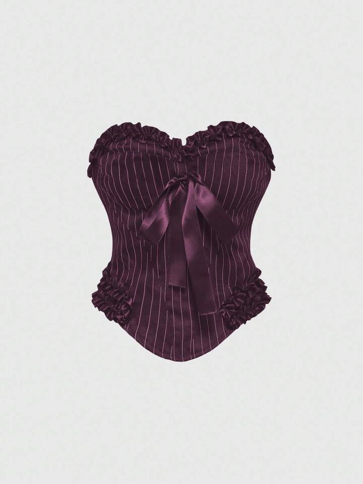 Goth توب بوسطر نسائي بشريط عقدة الفراشة على الطراز الجوتي، بلون بوردو