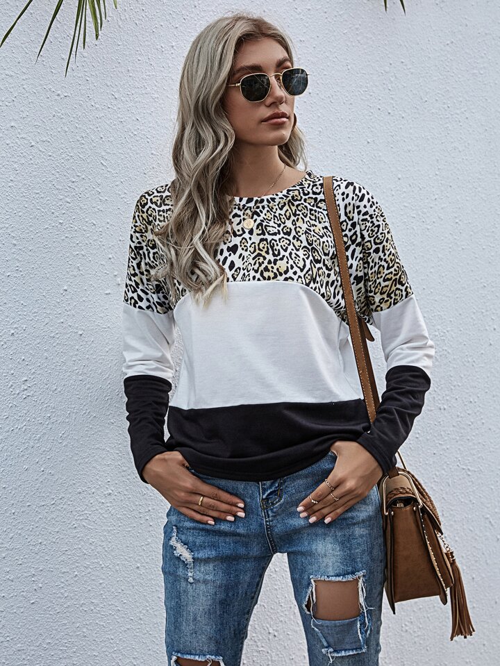 القميص الرياضي وبالطباعة الفهدية واللوحة التغايرة