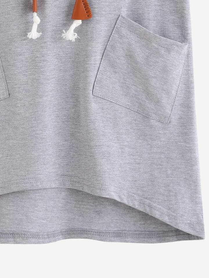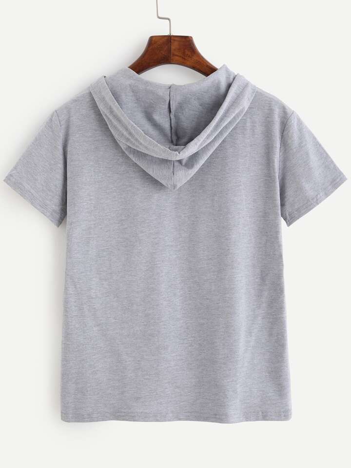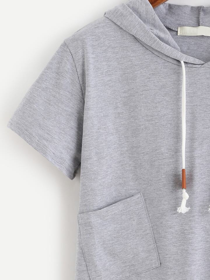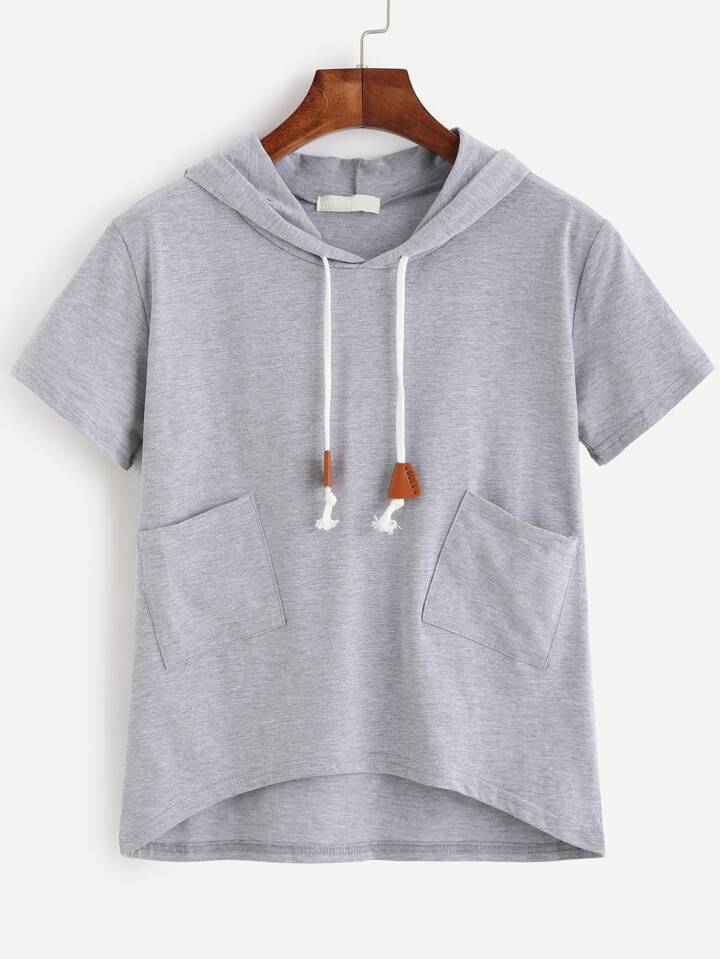 تي شيرت هودي رمادي كم قصير مع جيوب