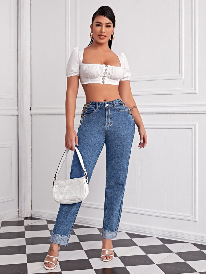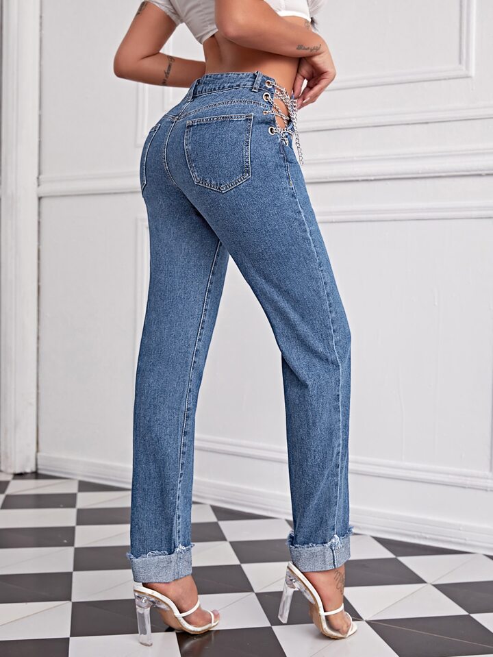 بنطلون جينز برباط بسلسلة مثقوب جرومت