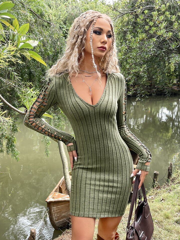 فستان ضيق موسيقى الروك المنحطة قص مجوف قبعة