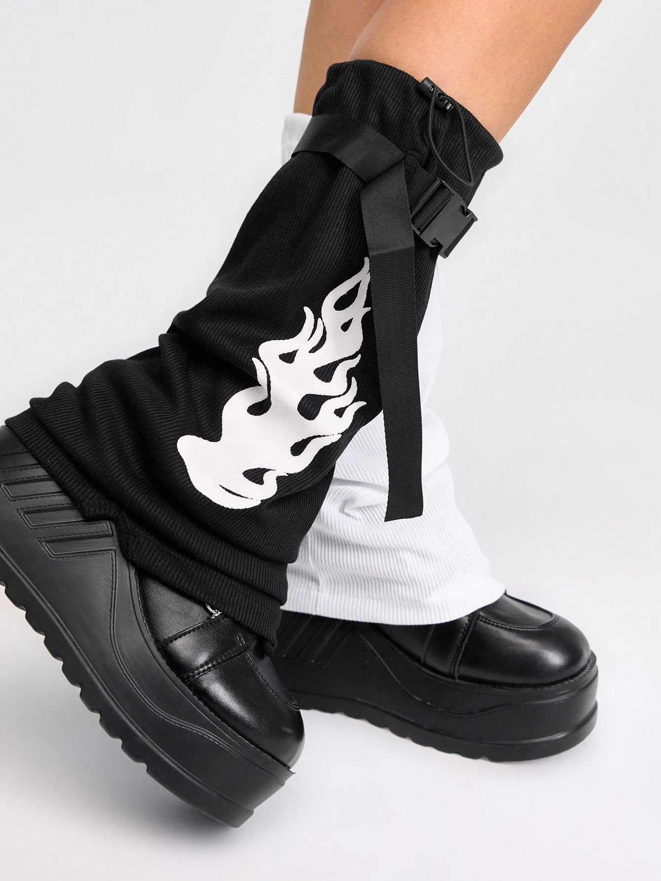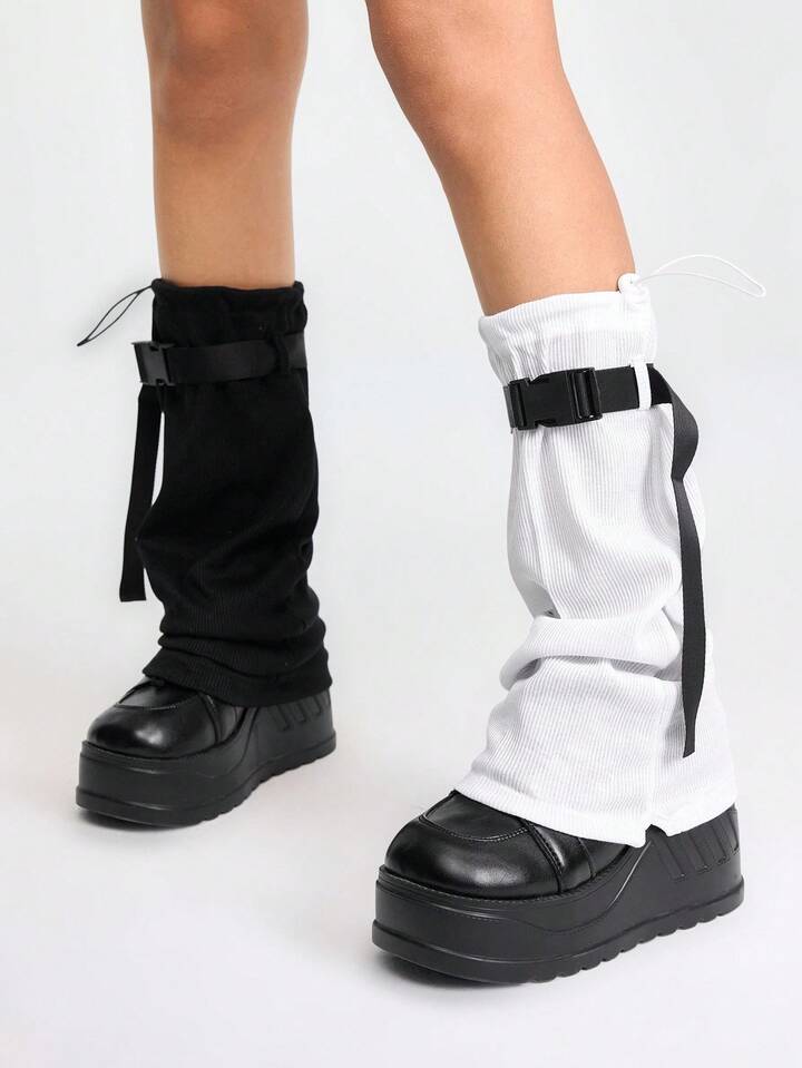 Grunge Punk زوج جوارب ذات نمط أسود وأبيض غير متماثل مع طقم من زوج من الجوارب الطويلة للنساء