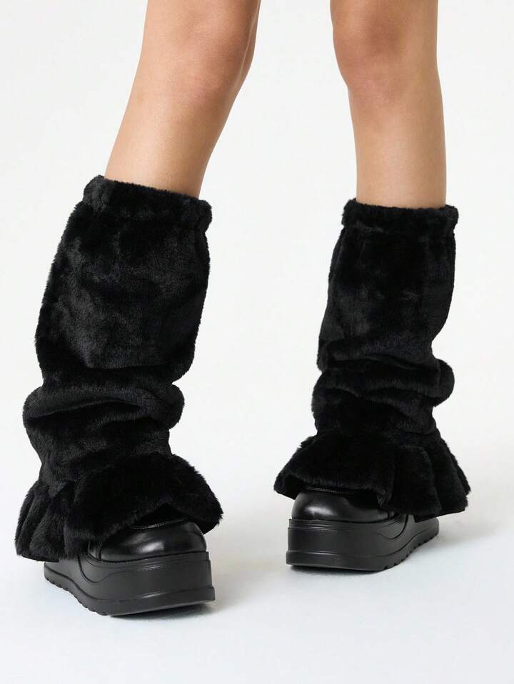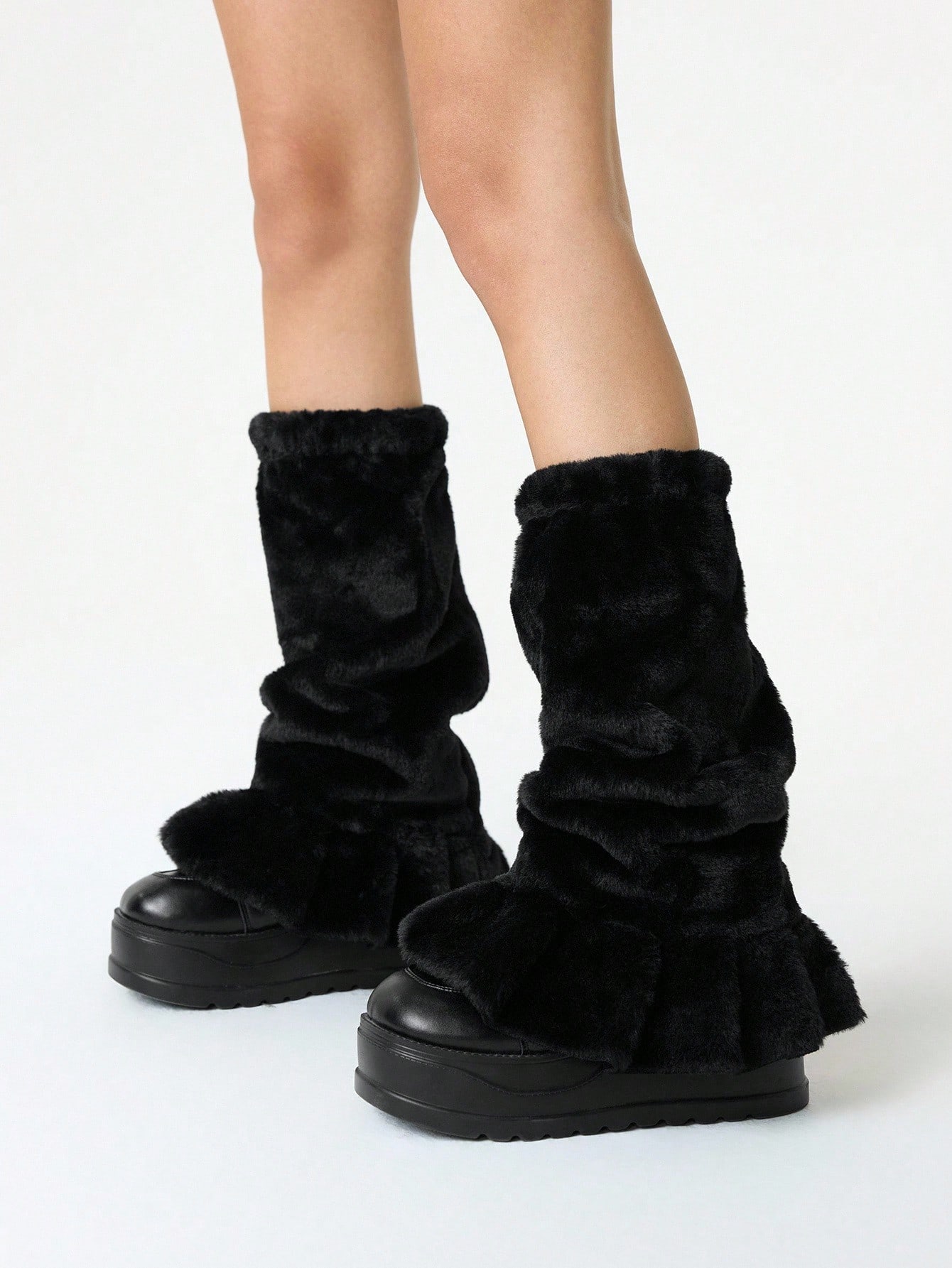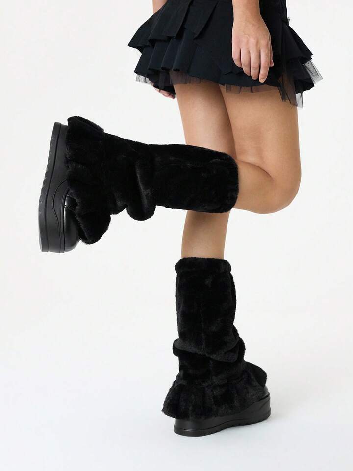 Grunge Punk زوج من الساقيات الدافئة السوداء الجميلة للنساء