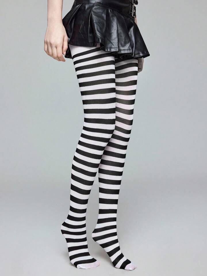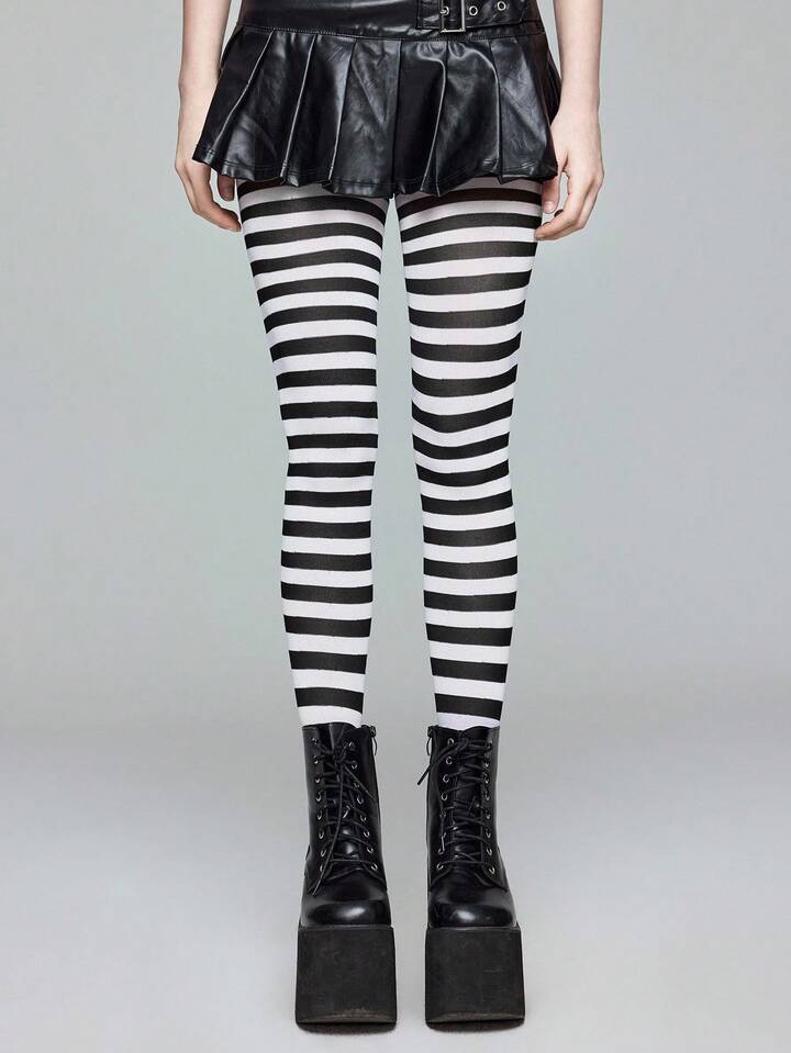 Grunge Punk زوج من جوارب ذات خطوط سوداء وبيضاء بطراز جوثي