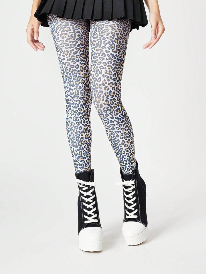 Grunge Punk زوج من جوارب/بنطلونات/جوارب القدم/ضيقة المرأة ذات طبعة نمرية ذات مرونة عالية وجذابة