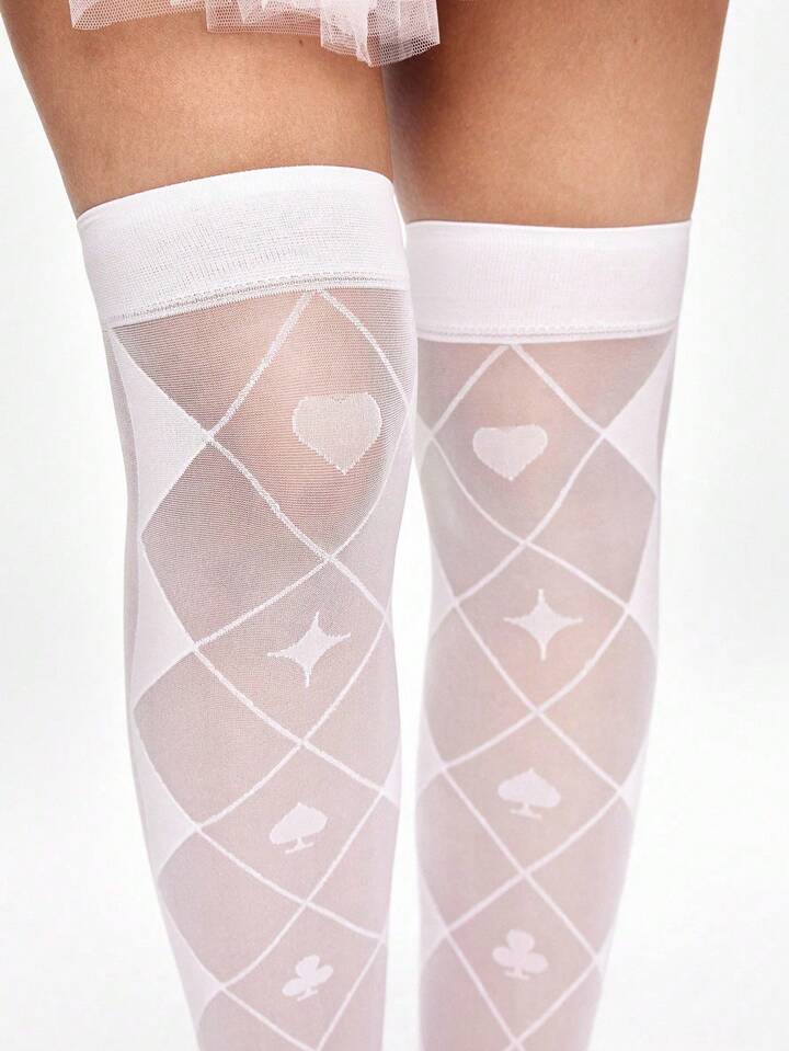 Grunge Punk زوج من جوارب طويلة فوق الركبة بنمط بطاقات اللعب الجذابة لليلة الهالوين، جوارب شفافة بنمط هندسي جميل مرنة، جوارب عصرية للارتداء اليومي والحفلات