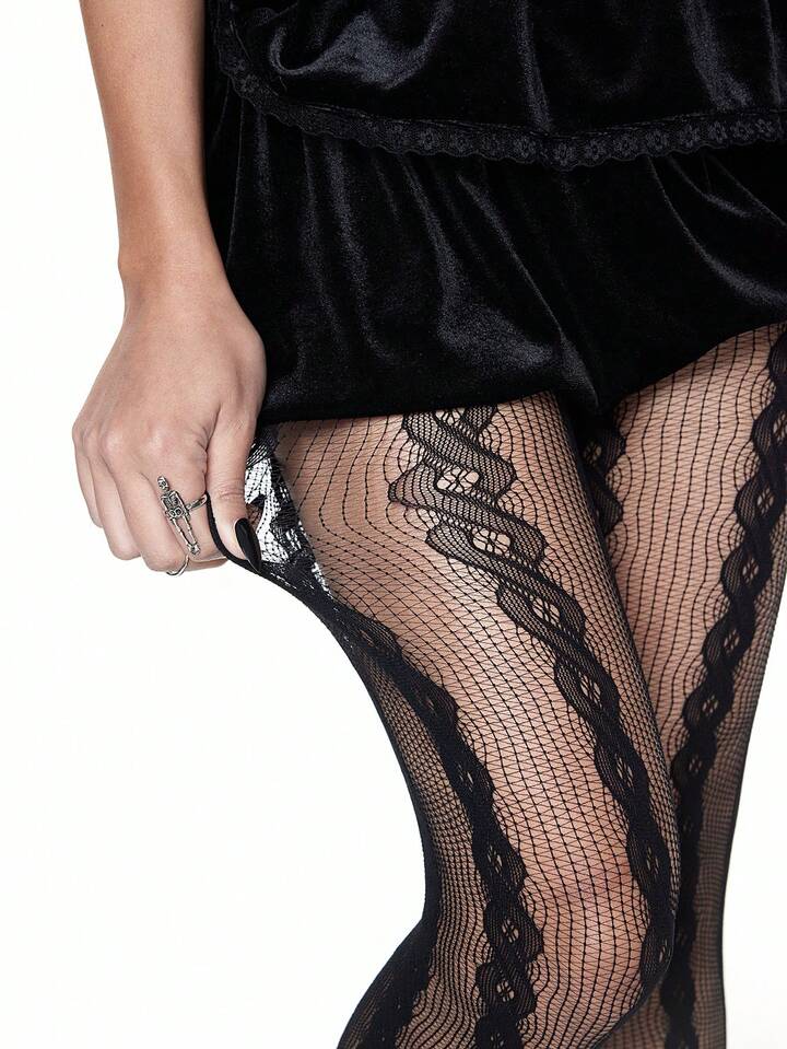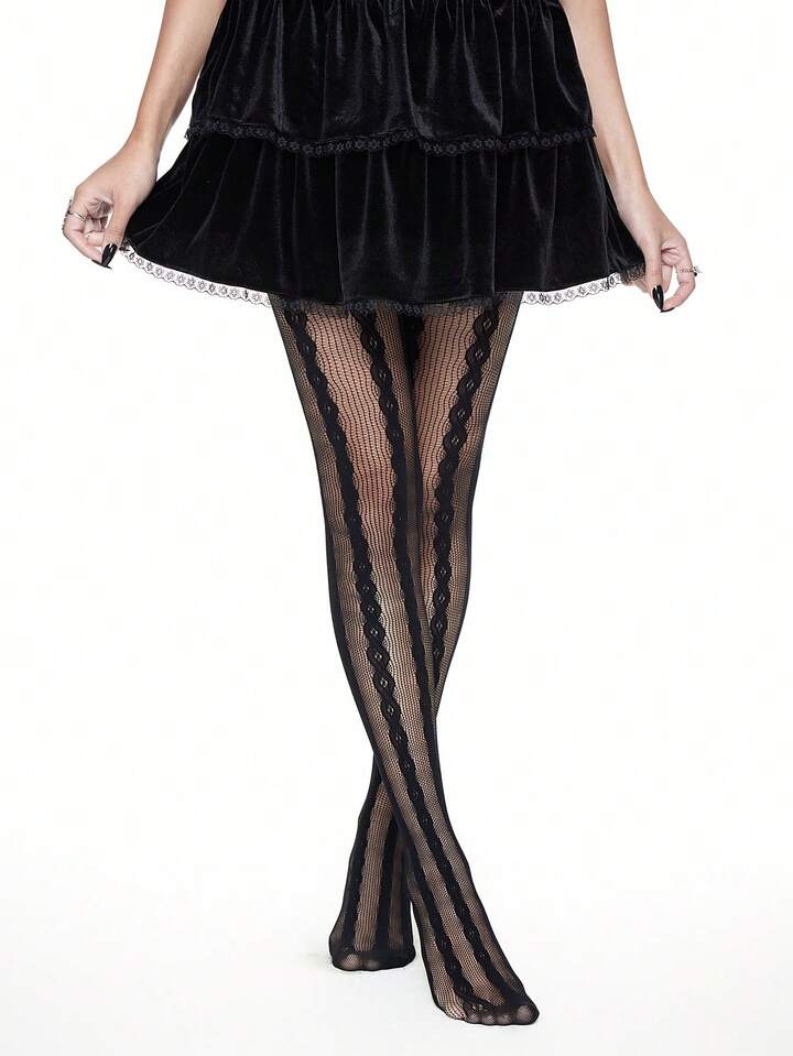 Grunge Punk زوج من الجوارب العمودية المخطط مع حافة دانتيل شبكية للنساء، متعددة الاستخدامات وعصرية، مناسبة لجميع المواسم