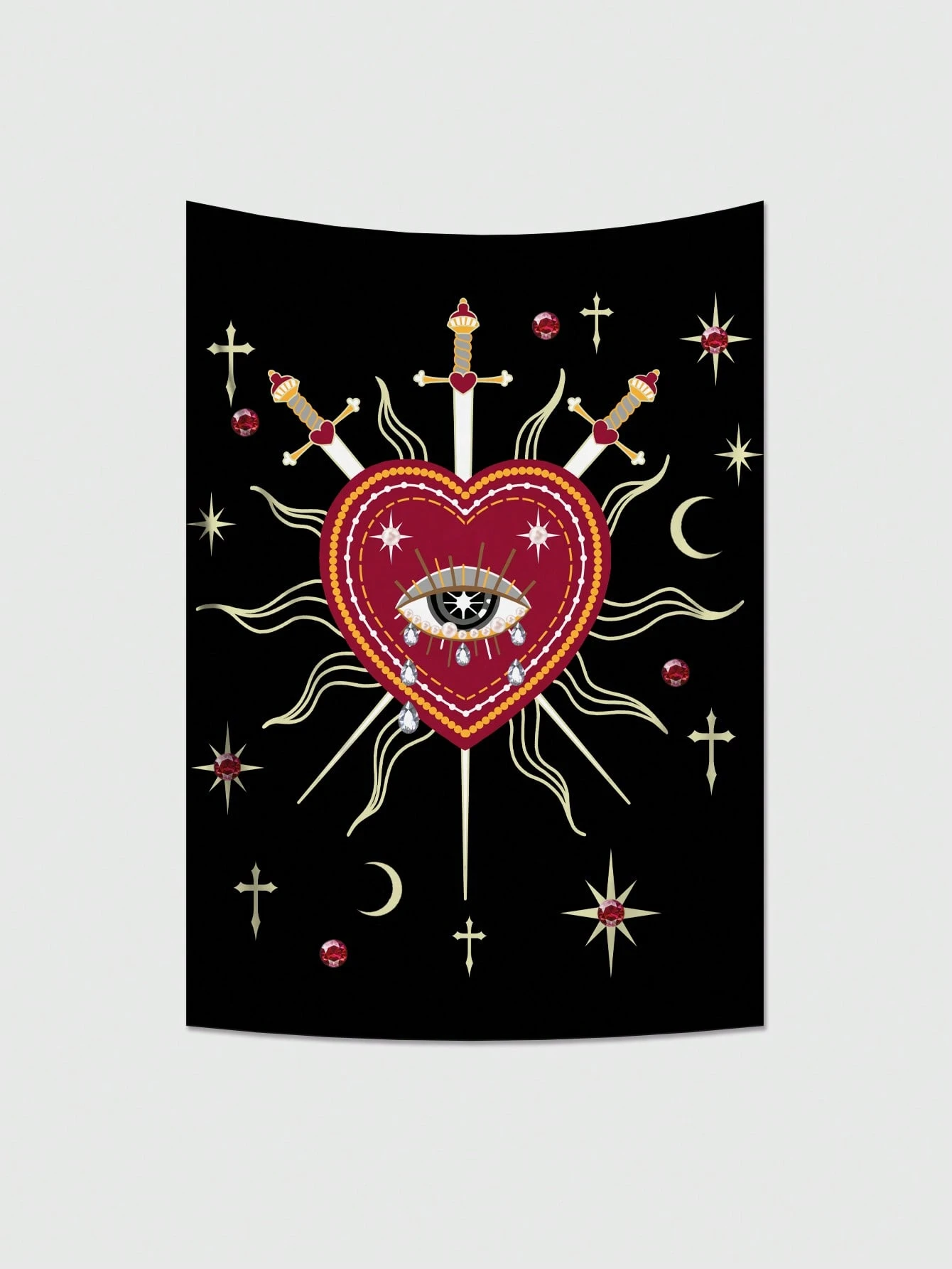 Grunge Punk قطعة واحدة من التابستري ذو الشكل القلب معلق على الحائط، مناسب لغرفة المعيشة وغرفة النوم