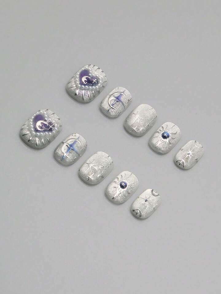 Grunge Punk 10 قطعة أظافر صناعية عالية الجودة مرسومة باليد بتصميمات الشمس والقمر بالإضافة إلى 3 قطع مواد لاصقة الجوانب، ملصقات أظافر فنية مرسومة باليد بنجوم وأقمار قابلة للإزالة ،رقعات أظافر صناعية متعددة الألوان مثل العين القطة اللامعة صالحة للارتداء في المناسبات والحفلات والرقص وفي الحياة اليومية