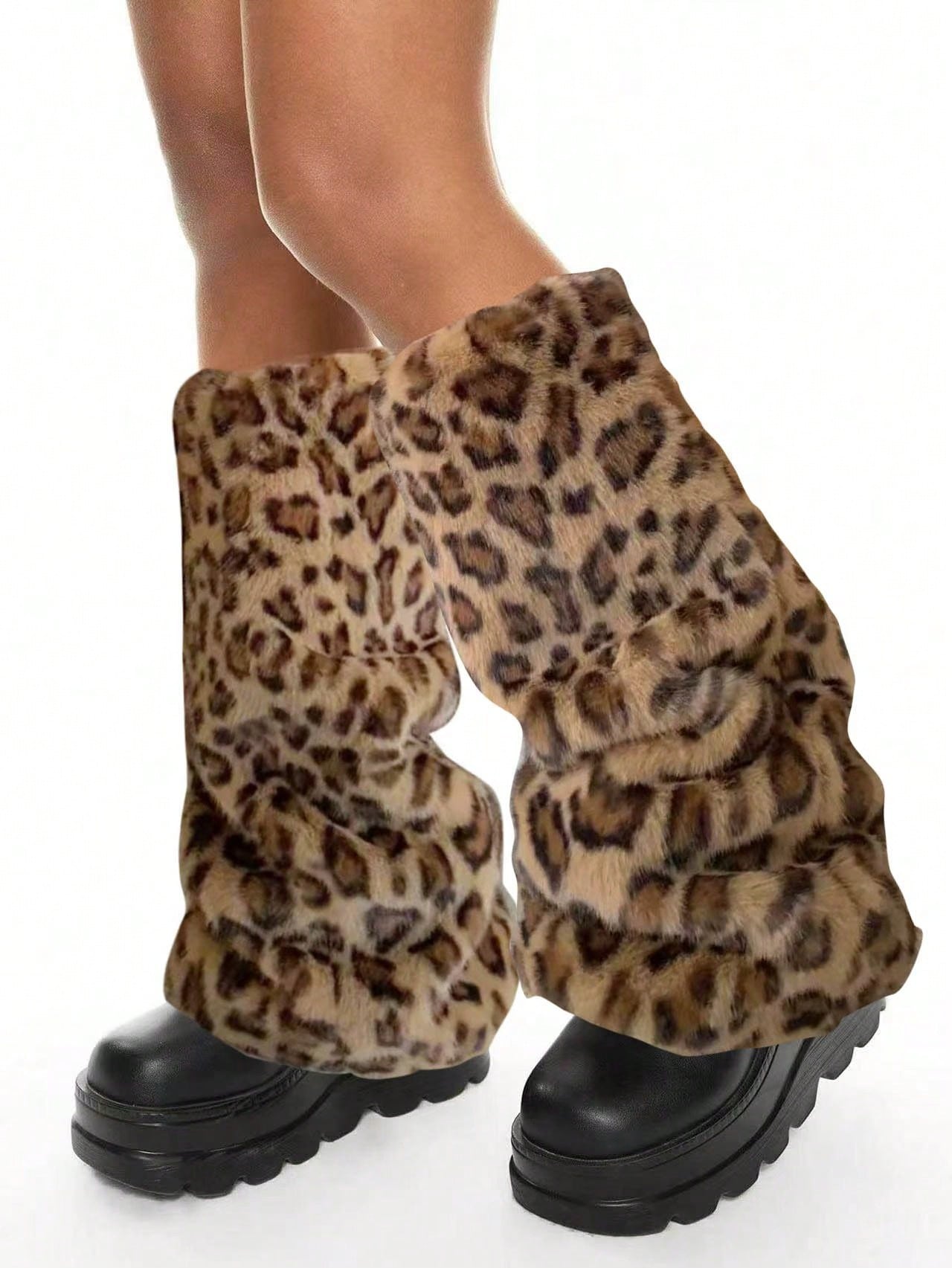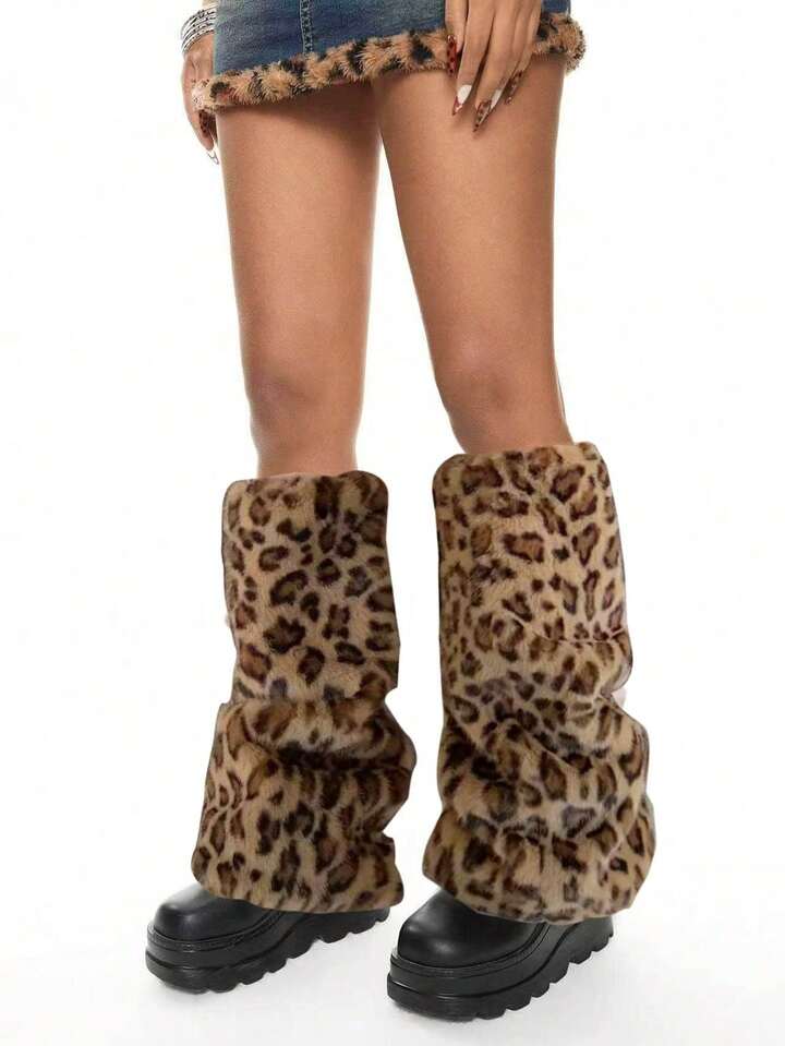 Grunge Punk زوج من أغطية الساق الدافئة والأنيقة ذات طبعة نمر للنساء