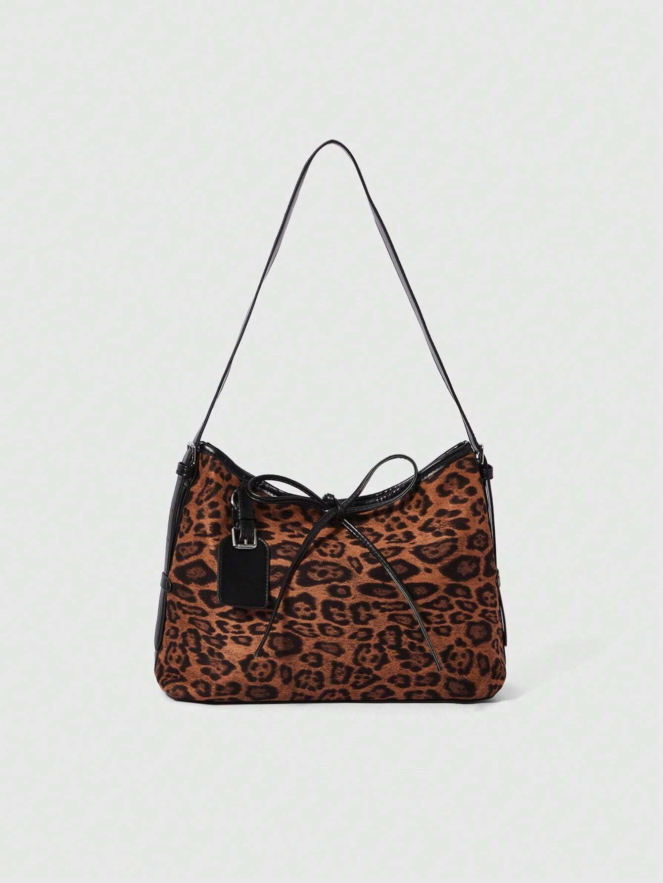 Grunge Punk حقيبة تسوق ذات سعة كبيرة بكشكشة وزخرفة الفهد، حقيبة كتف عصرية قطعة واحدة