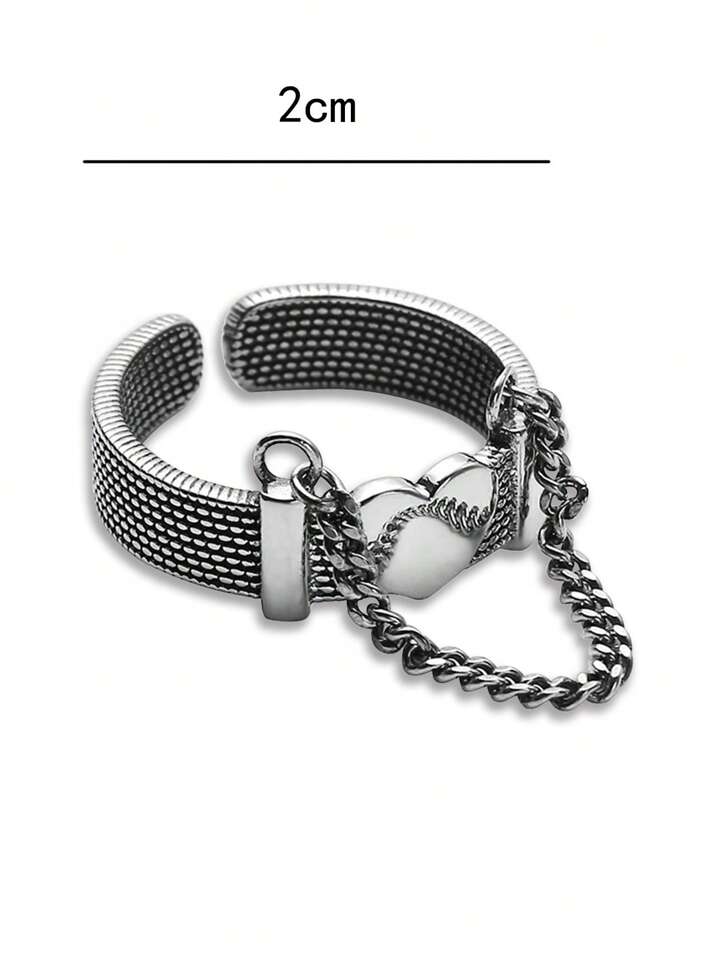 Grunge Punk خاتم مفتوح قلب ديكور سلسلة للنساء قطعة واحدة