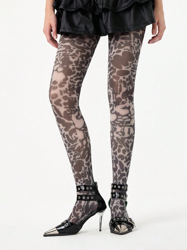 Grunge Punk 1 قطعة جوارب ضيقة/بنطلون ضيق/سروال ضيق بطبعة نمر جذاب للنساء