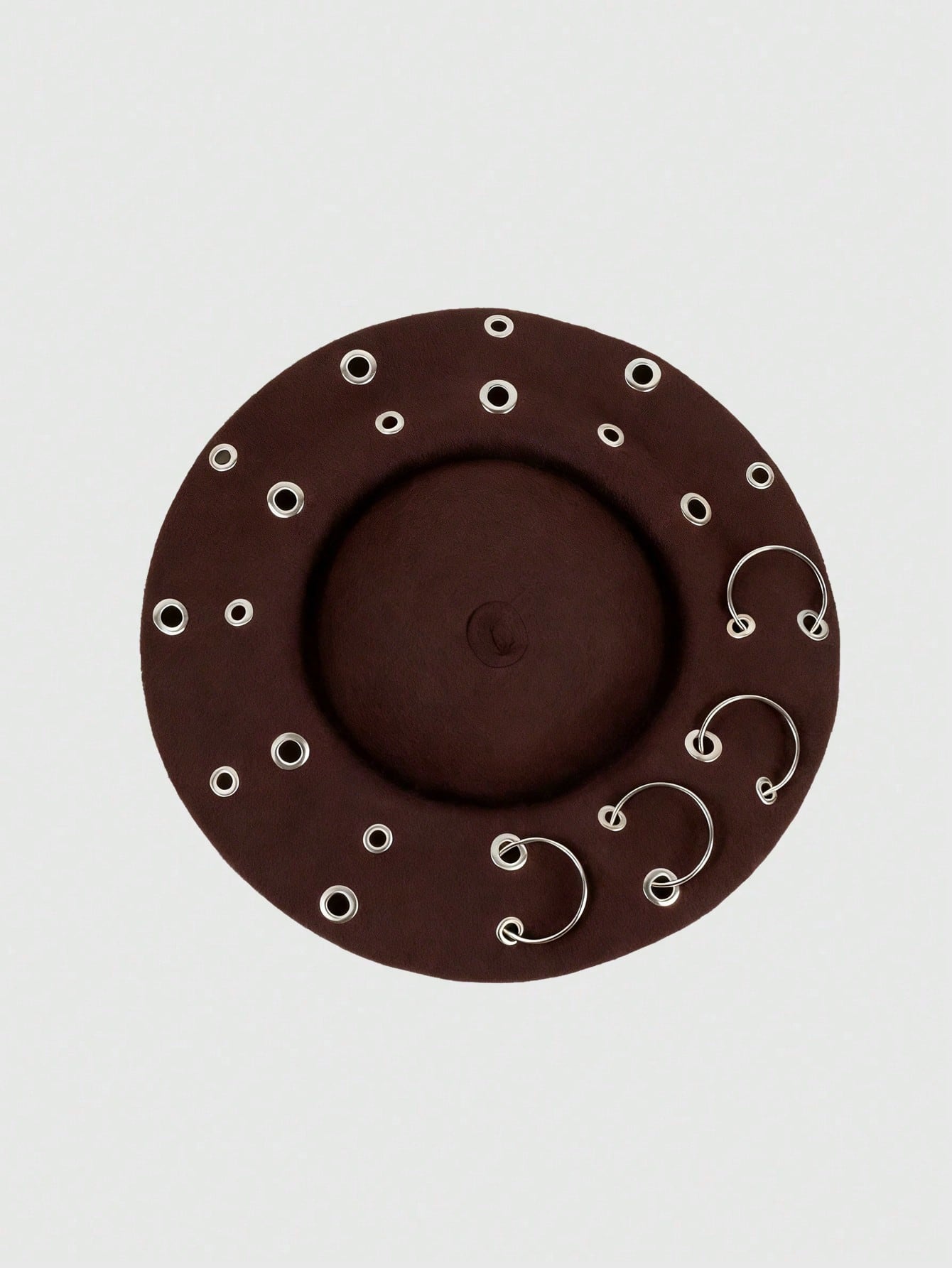 Grunge Punk قبعة بيريه دائرية مجوفة بطراز بانك، قبعة صحفي دائرية بقلادة Y2K، عنصر أزياء شخصي يومي