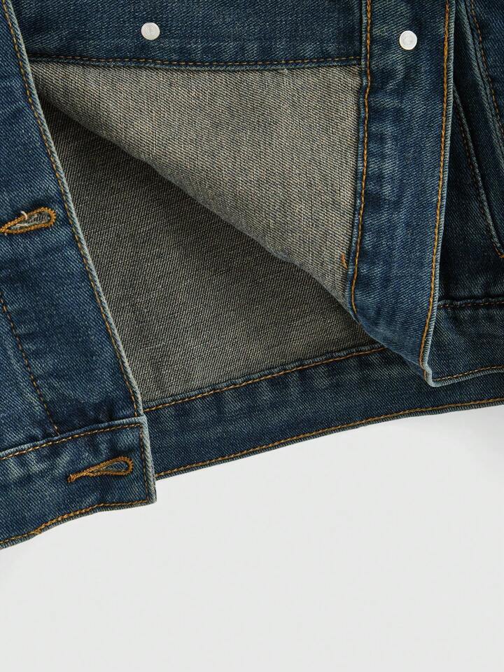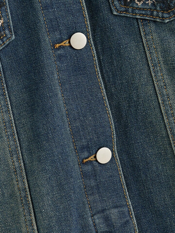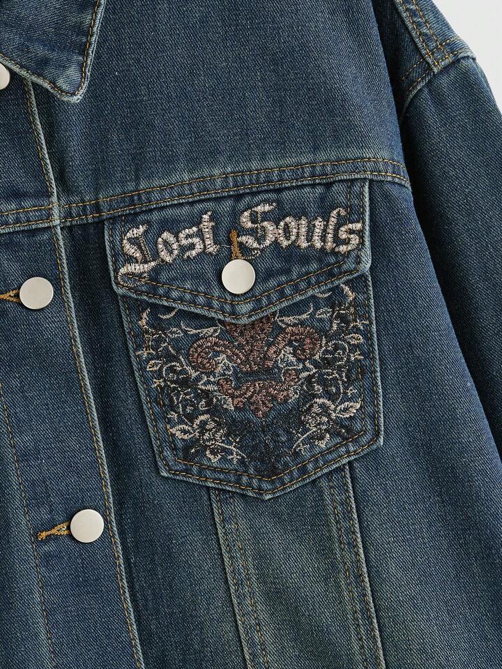 Grunge Punk البلوزة النسائية بجيوب مطرّزة بالكرمة بحريّة قديمة القطعة الواحدة