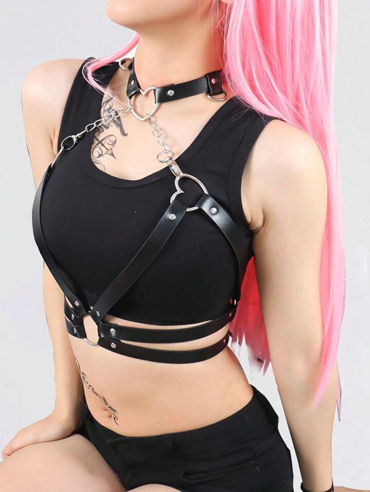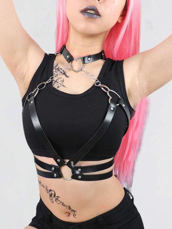 Grunge Punk حزام وحمالات خاتم القلب قطعة واحدة نساء