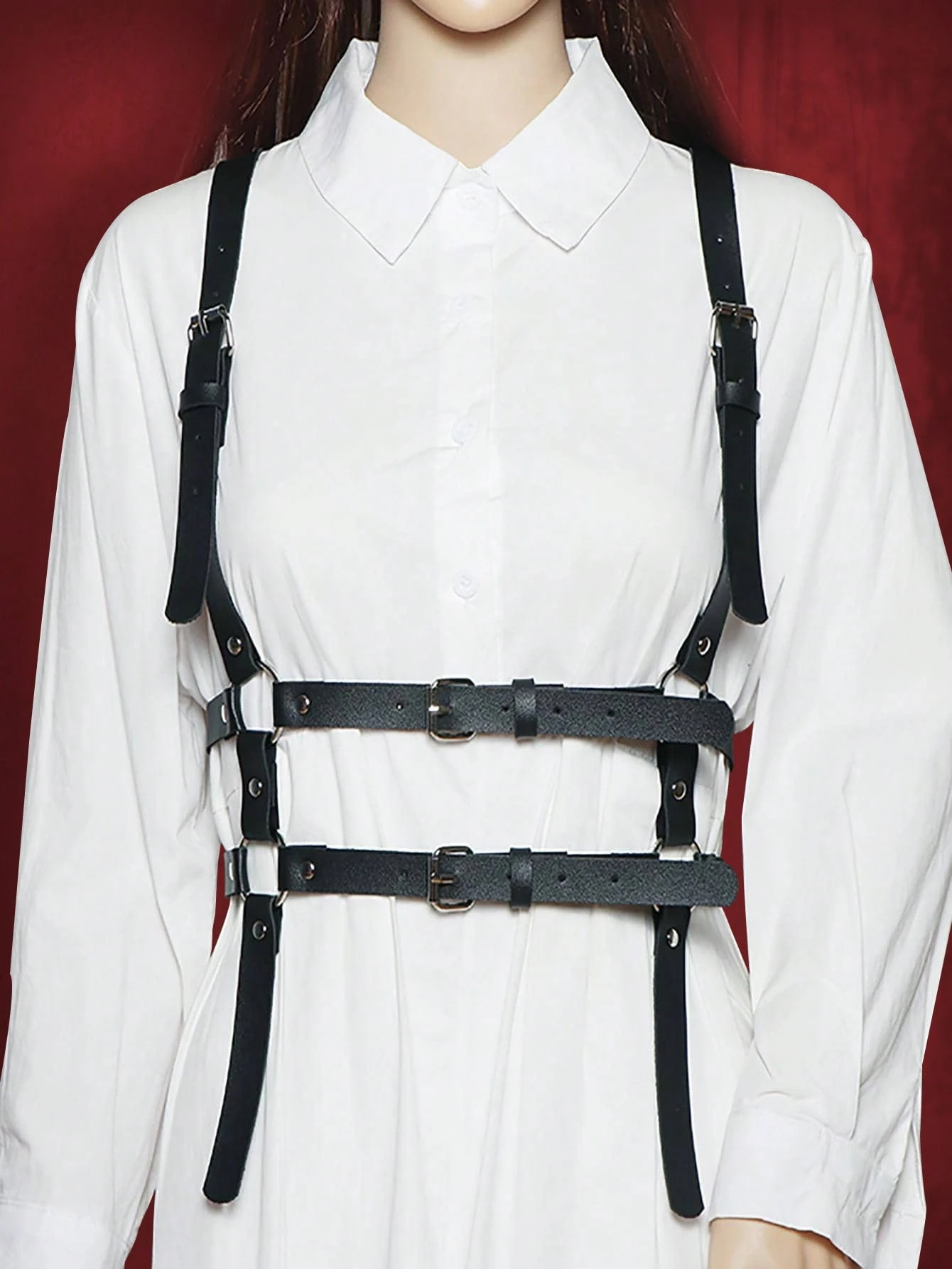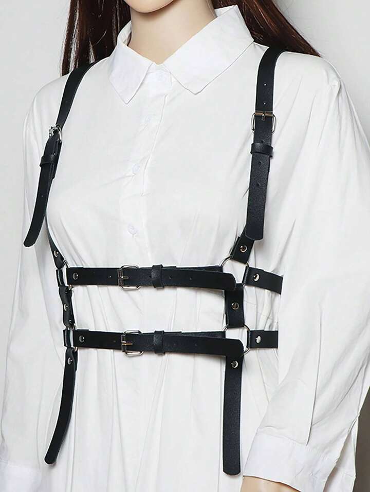 Grunge Punk حزام وحمالات الحلقة مرتبطة موحدة اللون قطعة واحدة نساء