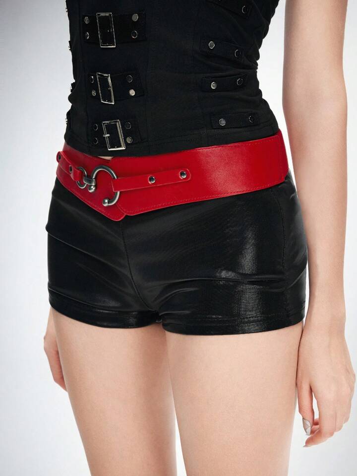 Grunge Punk 1 قطعة خصر مطاطي أحمر التصميم الغربي فستان نسائي، متعددة الاستخدامات للارتداء اليومي