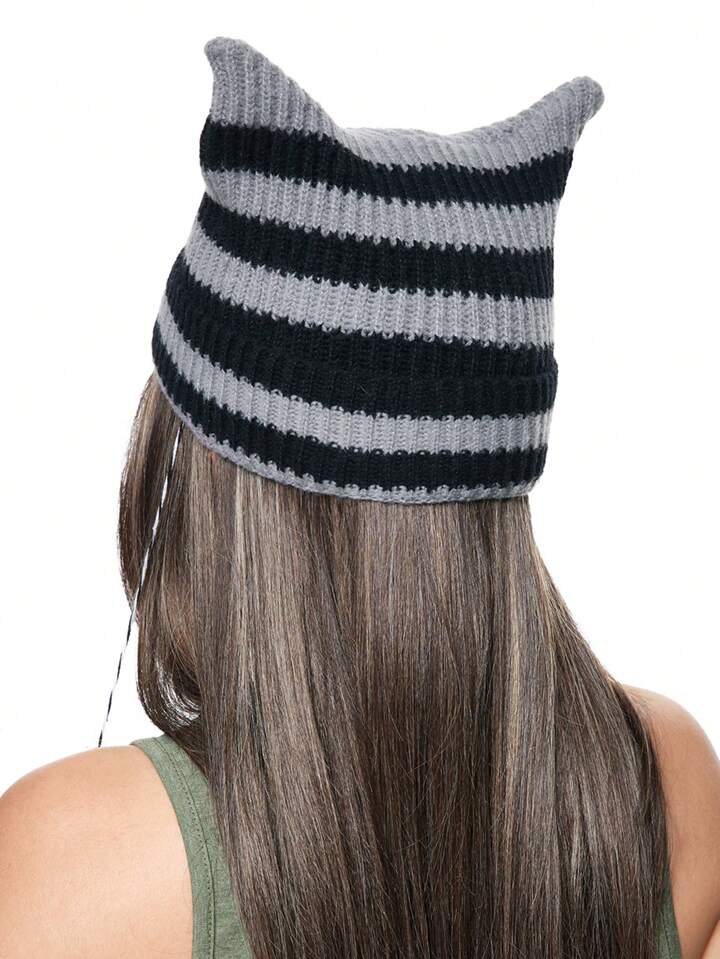 Grunge Punk قبعة شتوية منسوجة بأذنية مخططة للنساء، قطعة واحدة