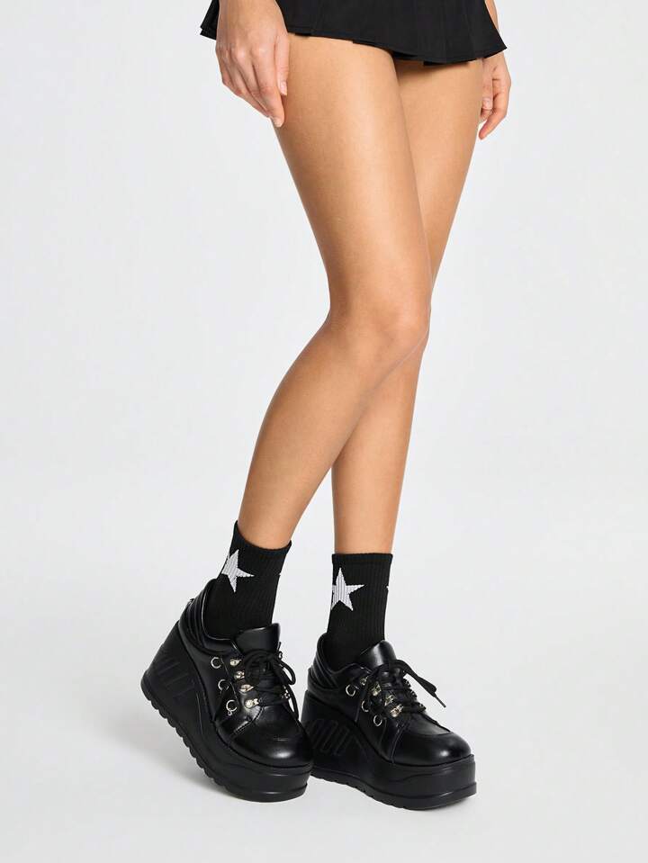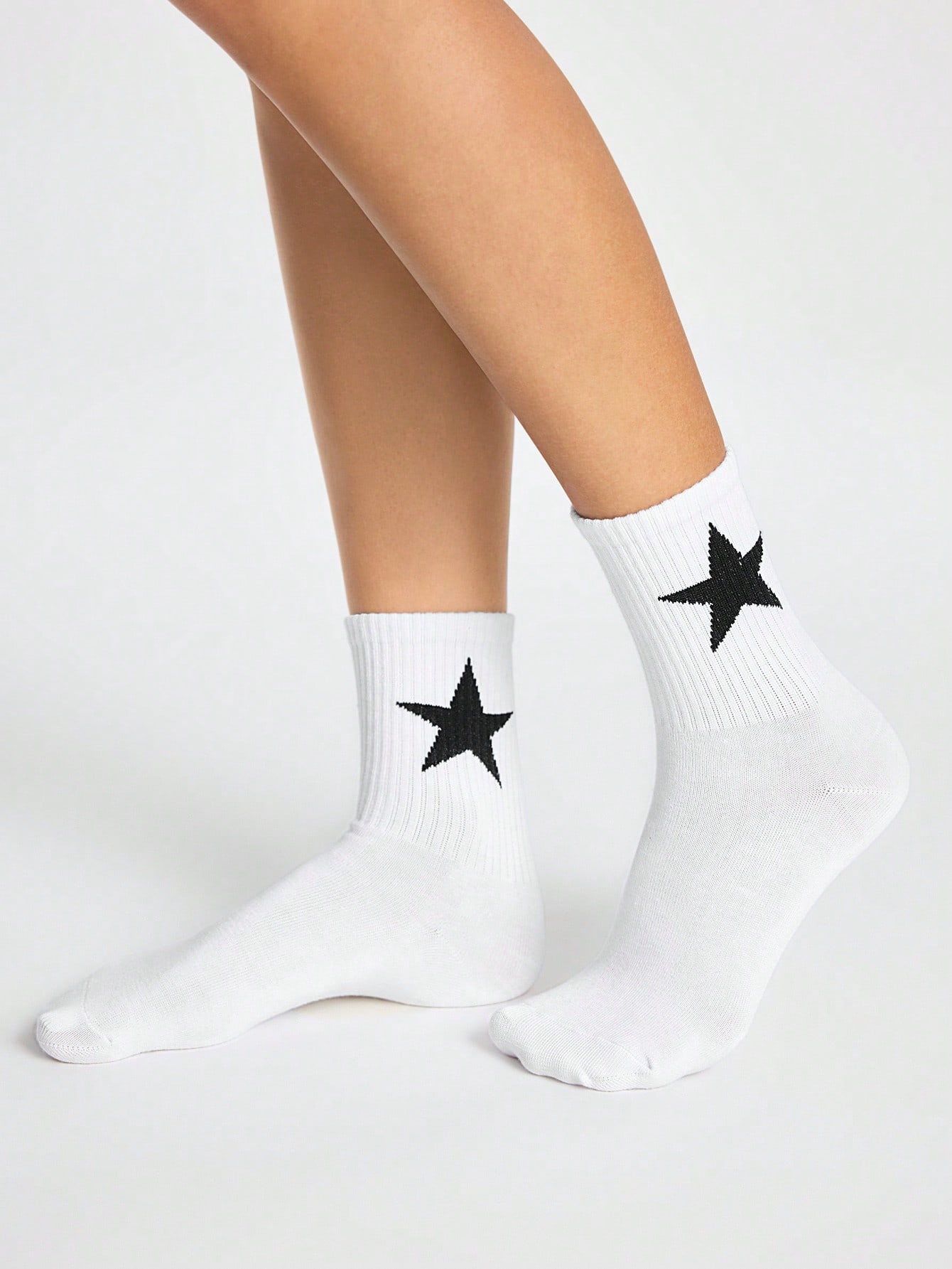 Grunge Punk زوجان من الجوارب وسط الساق البيضاء والسوداء ذات نمط نجمي ثنائي الاتجاه، تصميم مناسب للأزواج