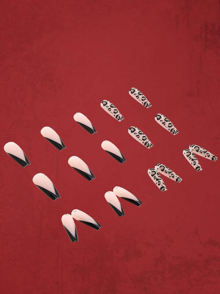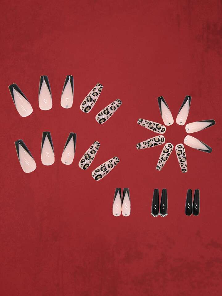 Grunge Punk 24 قطعة نمط الفهد أظافر اصطناعية و ورقة واحدة شريط