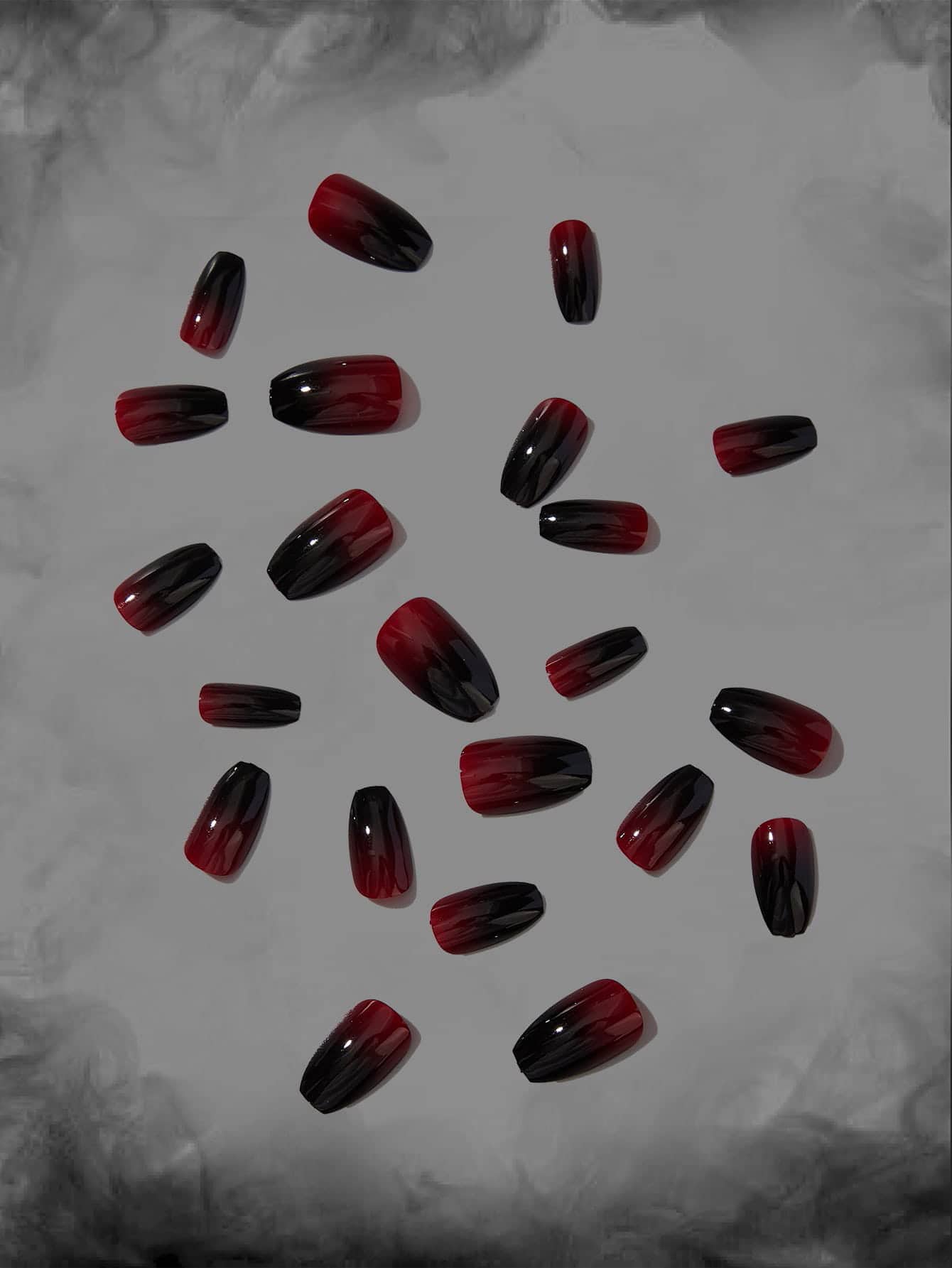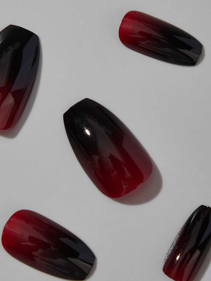 Grunge Punk أظافر اصطناعية قصير نعش ألوان متدرجة 24 قطعة و شريط ورقة واحدة