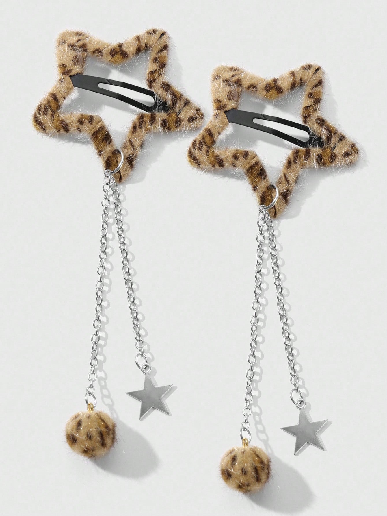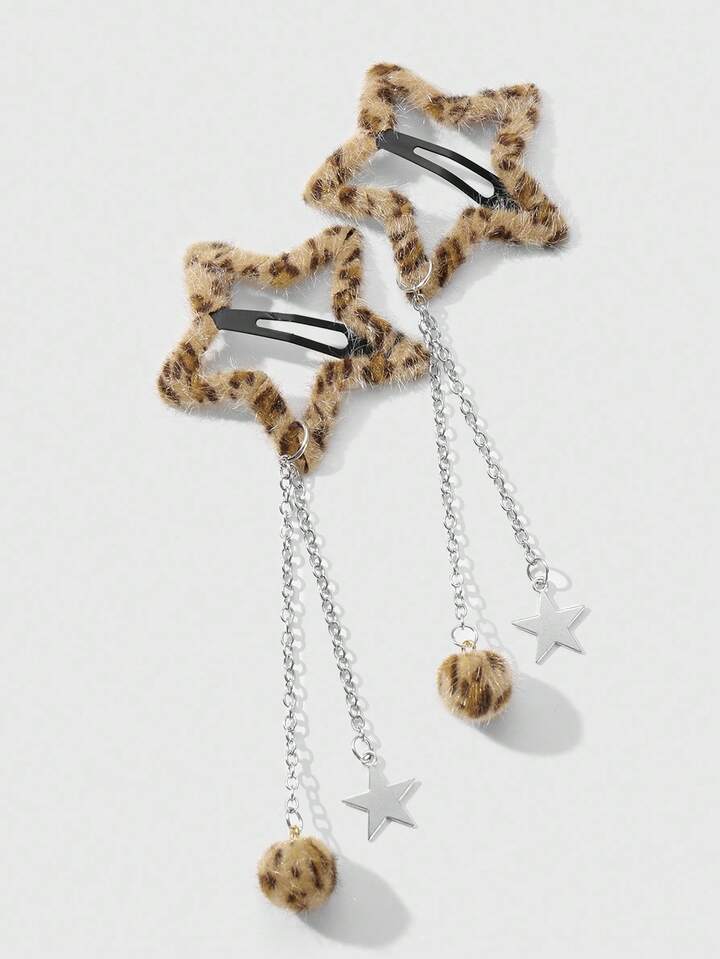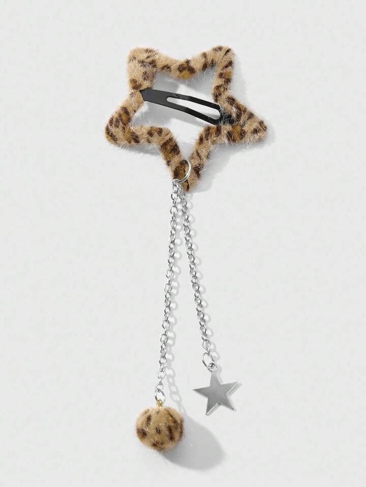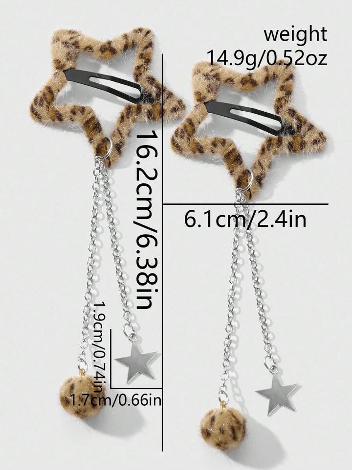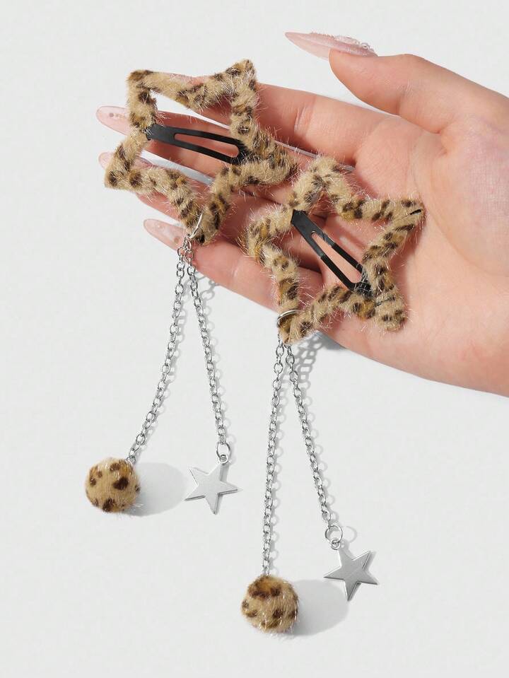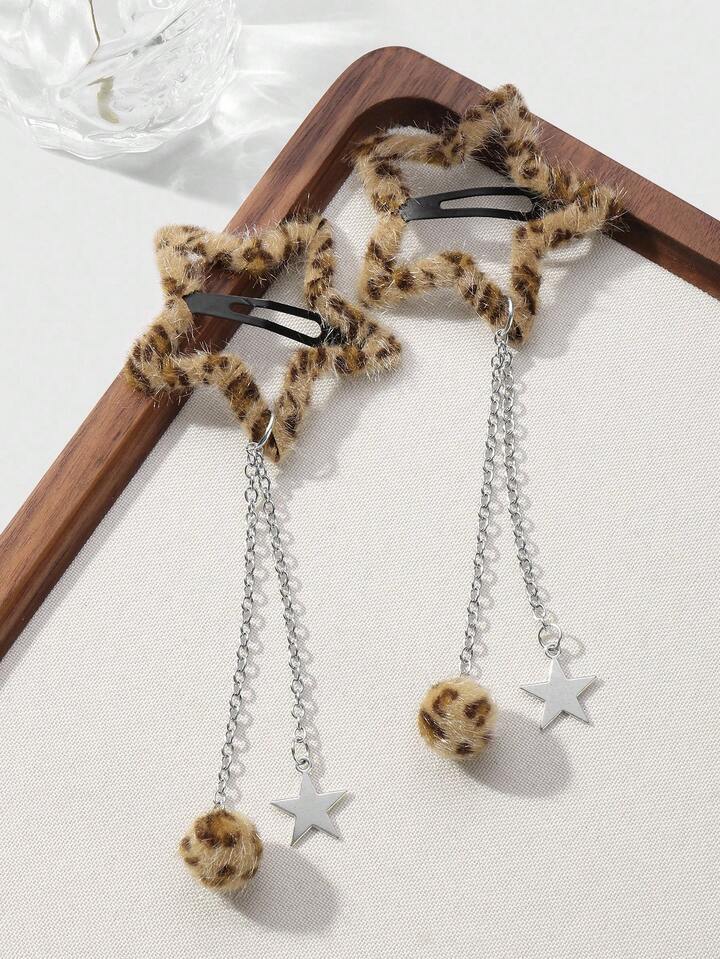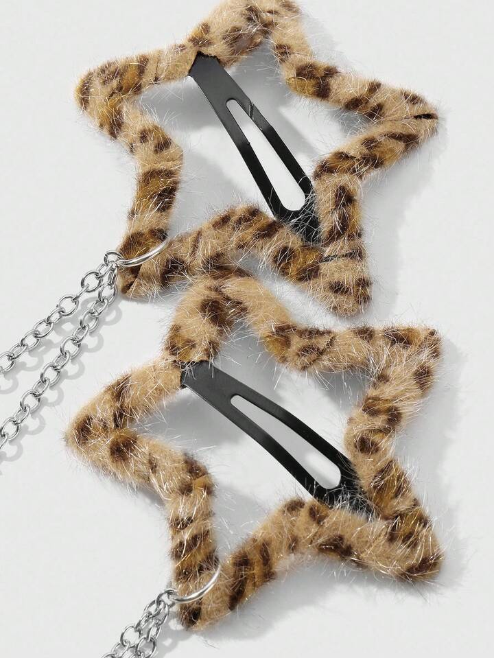Grunge Punk مجموعة مشابك شعر نجمية ذات طبعة نمر فرو كرة Y2K رجعية أنيقة، مناسبة للنساء/الفتيات للاستخدام اليومي، هدية عطلة