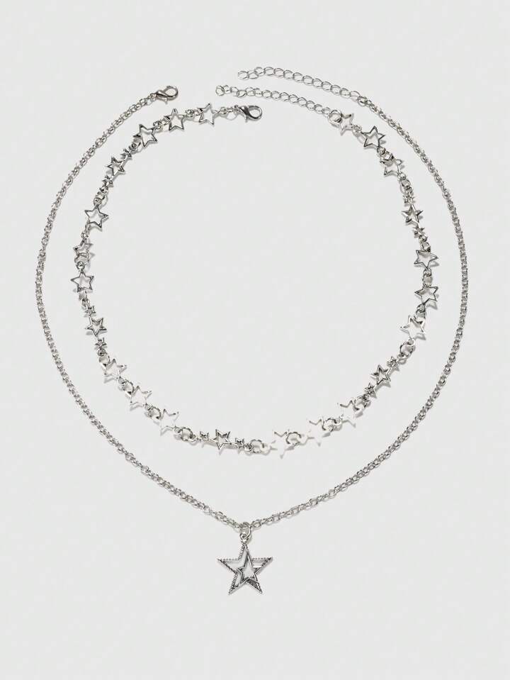Grunge Punk قلادة ستارة بشكل نجمة يونغ بنك الأسلوب من سبيكة معبأة 2قطعة/علبة للنساء