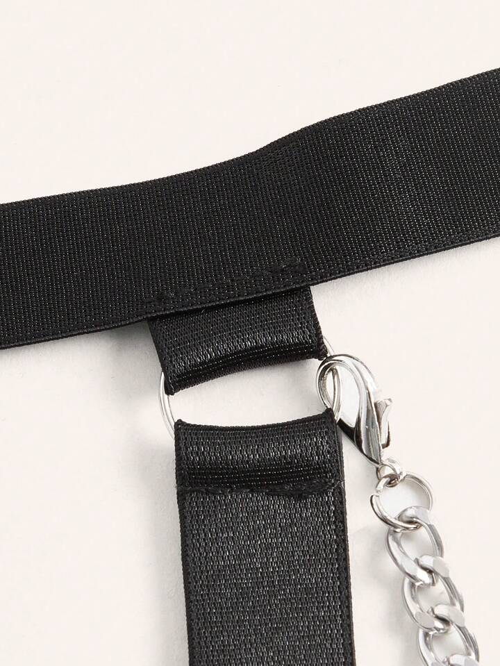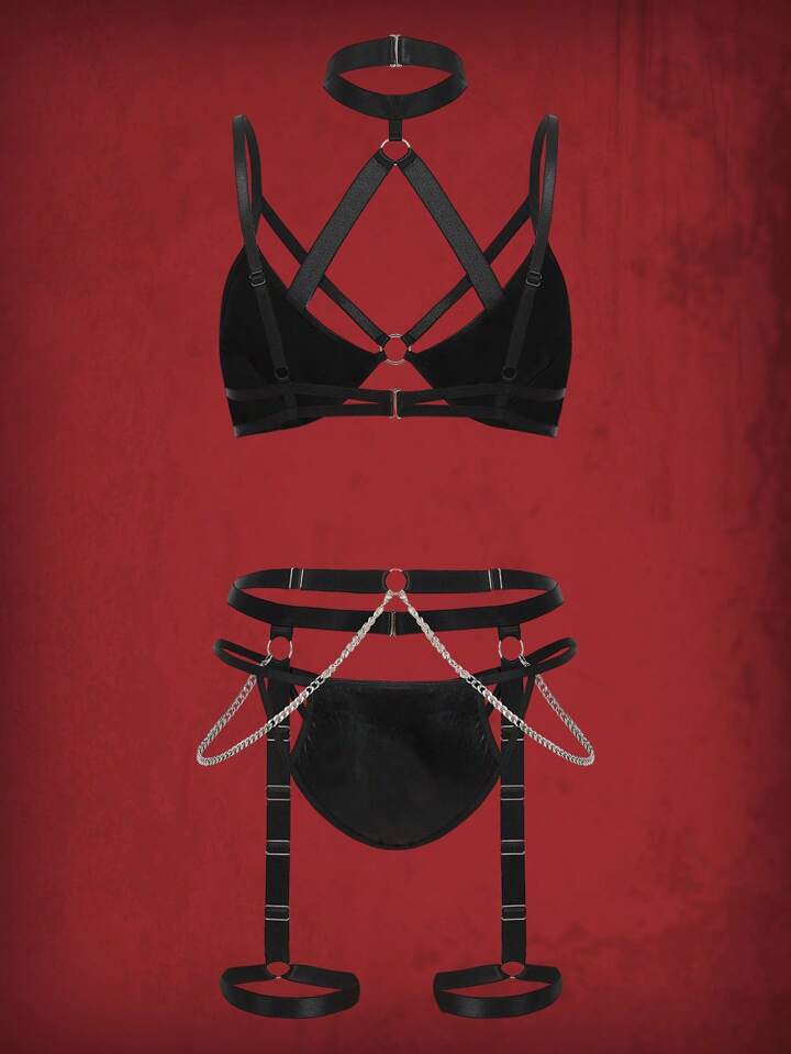 Grunge Punk طقم ملابس داخلية موحدة اللون مضفور رباط ساق 3 قطع