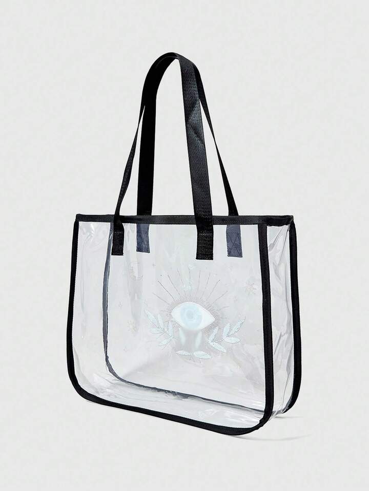 Grunge Punk شنطة يد شفافة مطبوعة باللون الأسود، شنطة شاطئ للسيدات