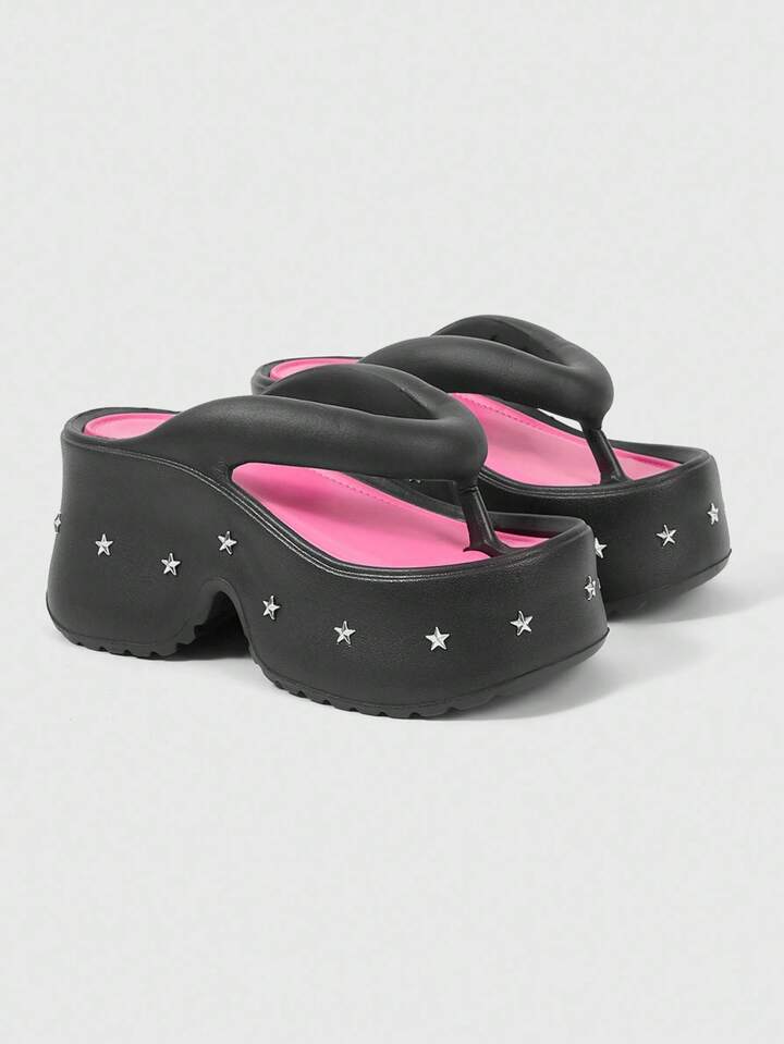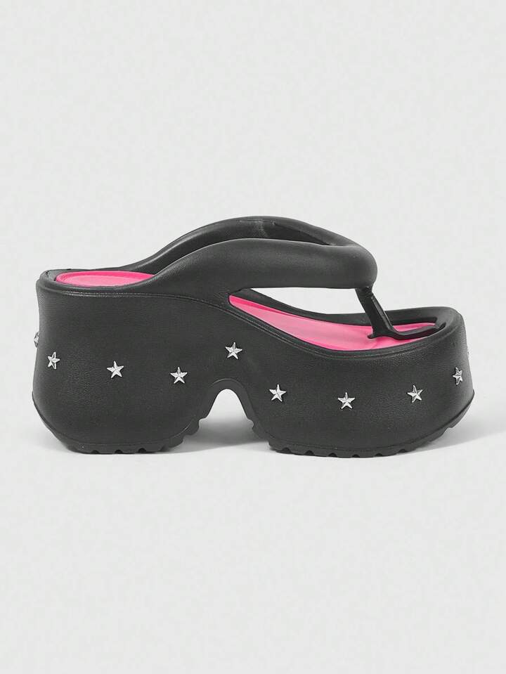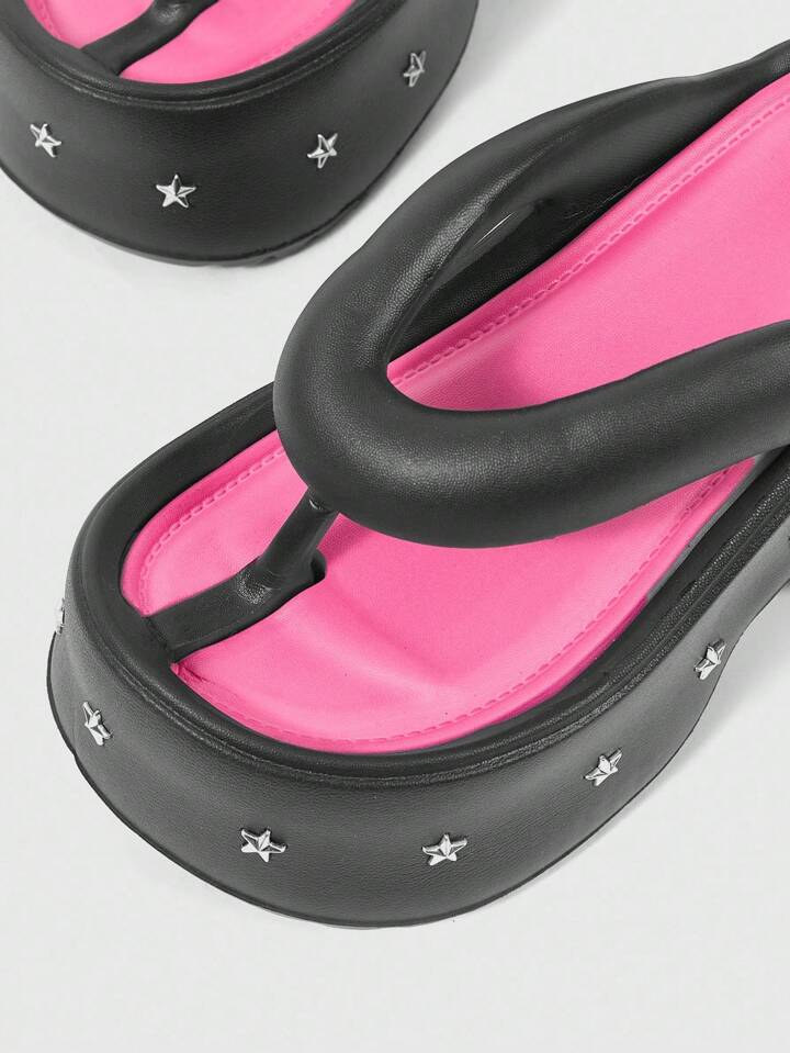 Grunge Punk صنادل نسائية بتصميم روك أسود بفتحة للأصابع، مزينة بالمسامير، طراز جوتيك روماني، مناسبة للشاطئ، لمناسبة هالوين