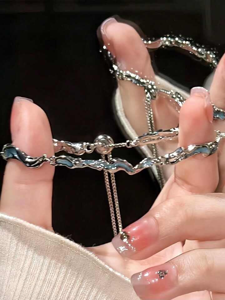 Grunge Punk أساور بتصميم موجي أزرق موجي بتصميم متدفق