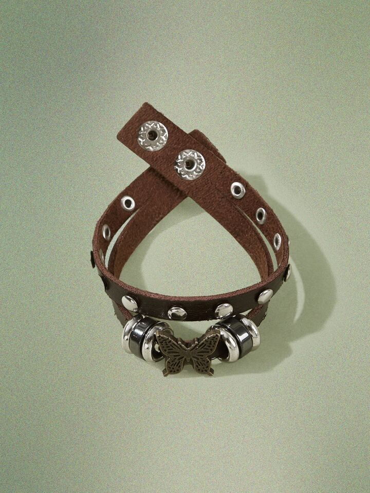 Grunge Punk سوار طبقات فراشة و بديكور مرصع