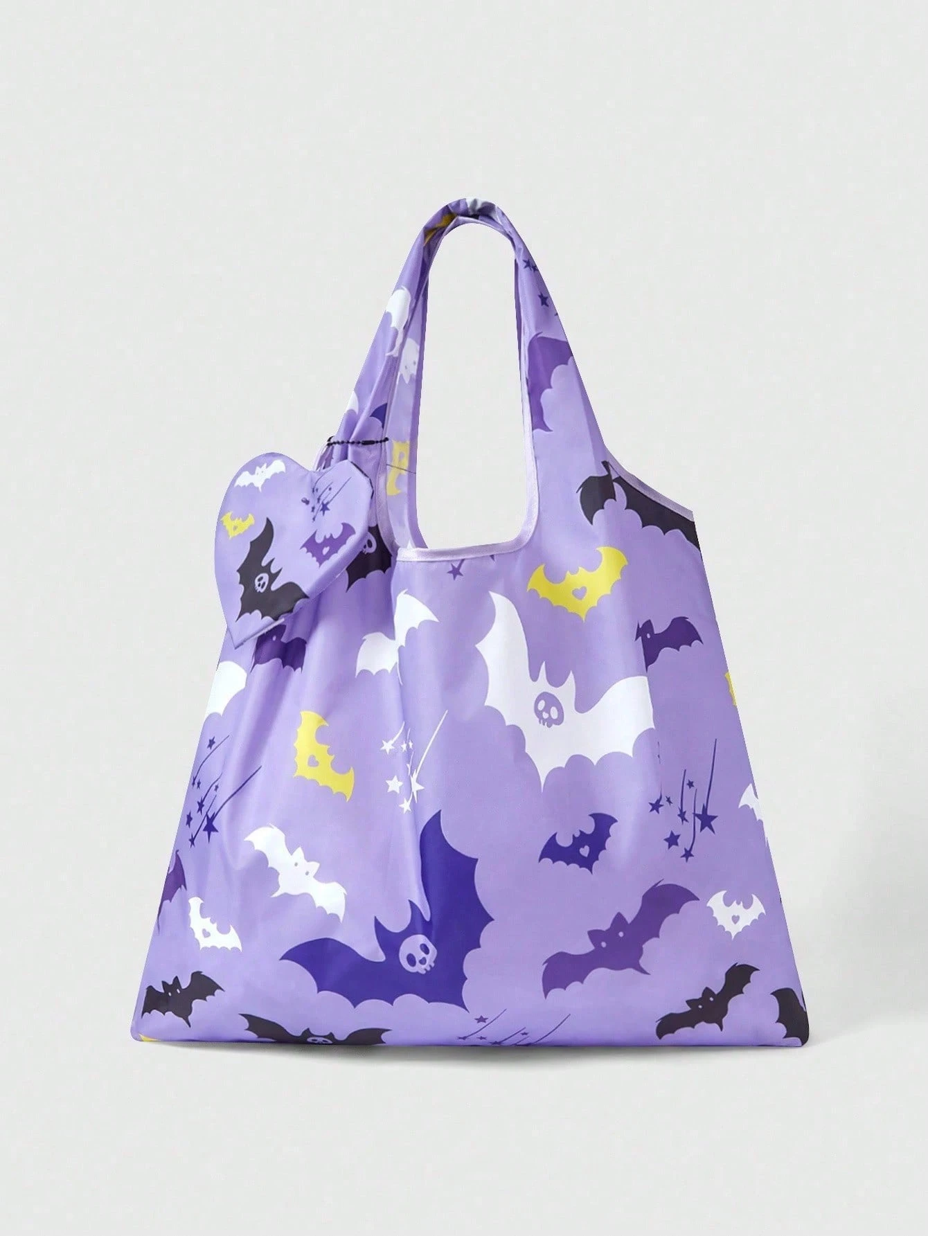 Grunge Punk Contrast Color Bat & Star Pattern Large Capacity Foldable Tote Bag With Coin Purse