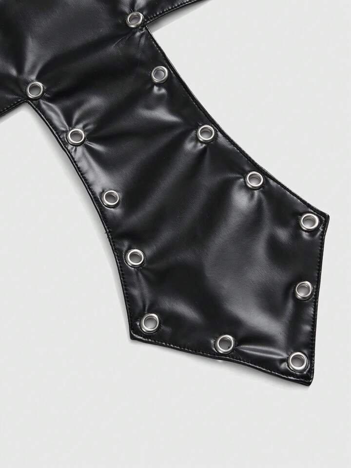 Grunge Punk رباط رقبة مزود بمنقلب متقاطع من الجلد الاصطناعي PU أسلوب قوطي صوت داكن، حمالة صدر مثيرة